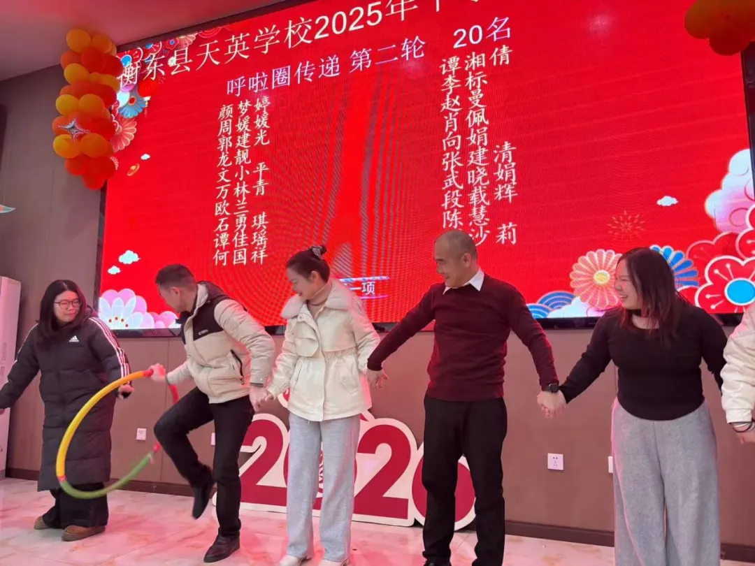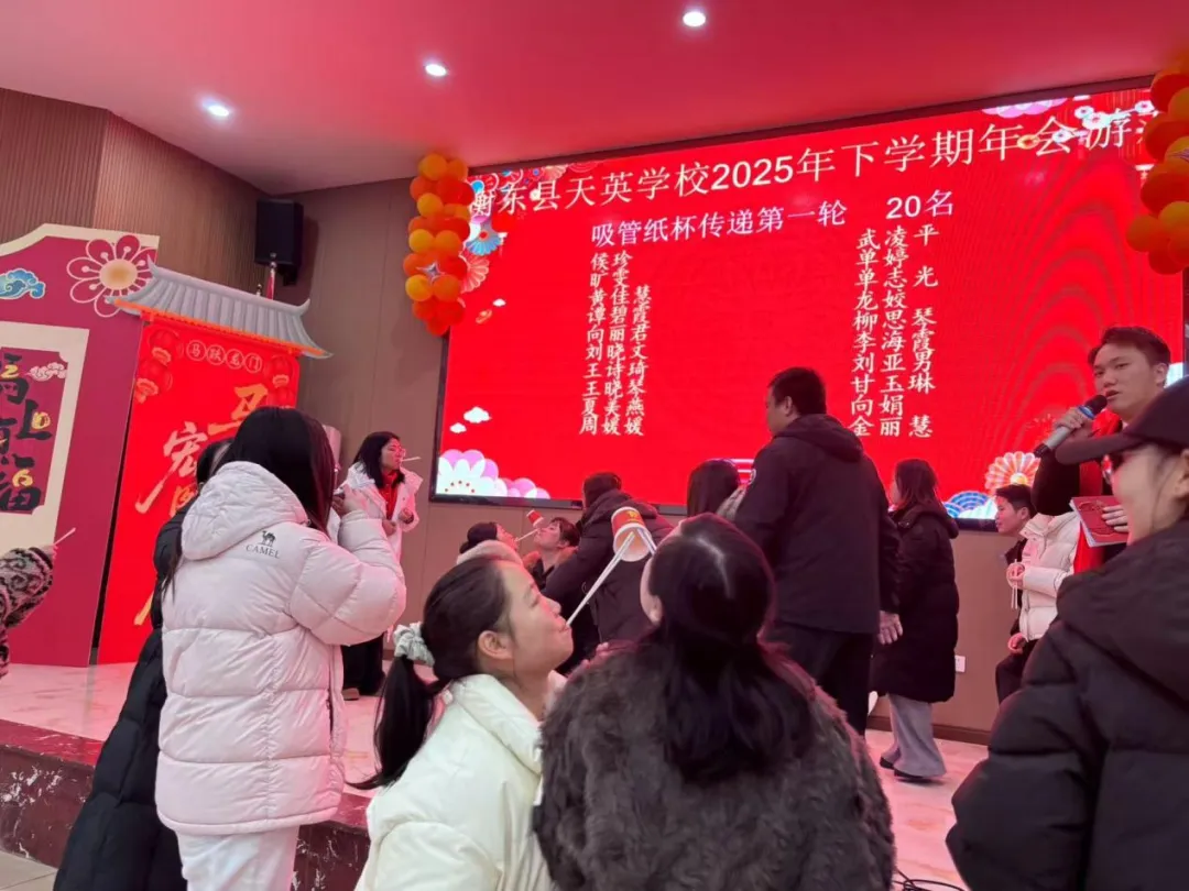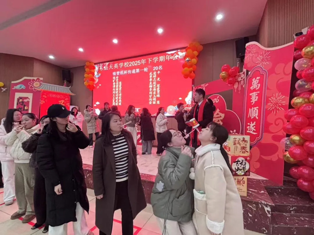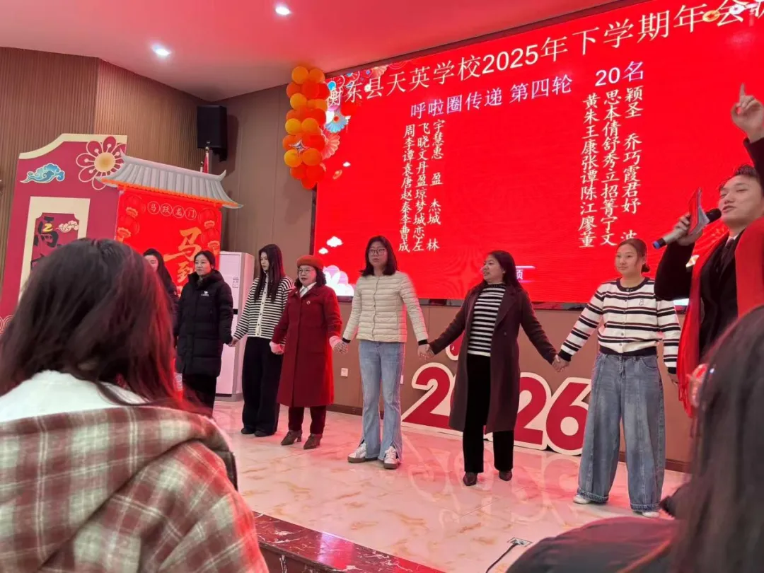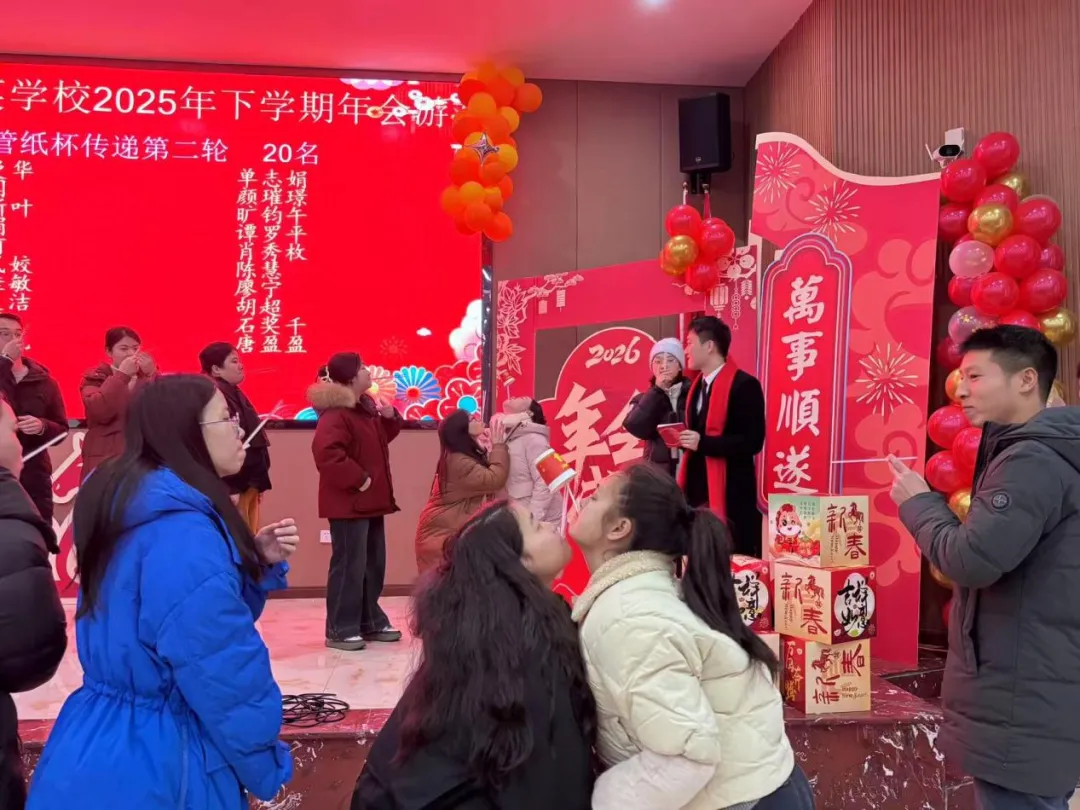 年会在主持人热情洋溢的开场白中拉开序幕,温馨的问候、诚挚的祝福瞬间点燃全场氛围。首先,执行董事彭麒悟先生进行大会致辞。彭董与大家一起回顾了2025年学校各项工作取得的丰硕成果——教学质量稳步提升、德育建设亮点纷呈、师生竞赛捷报频传,他肯定了每一项成绩的背后,都离不开老师们的辛勤耕耘与无私奉献。同时,彭董立足学校发展全局,高屋建瓴地指明了下学期的工作方向,从课程改革深化到师资队伍建设,从校园文化升级到育人质量提升,为全体天英人明确了奋斗目标,凝聚了前行力量。