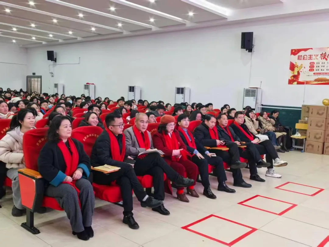 随后,郭建光书记进行期末工作总结。他以详实的数据、具体的事实,系统梳理了本学期各项工作的推进情况,既肯定了全体教职工在教育教学、学生管理、校园安全等方面的扎实付出,也客观分析了工作中的亮点与不足,并对下学期的重点任务提出了明确要求与殷切期望。朴实真挚的话语、务实严谨的态度,让在场每一位教师都备受鼓舞,更坚定了深耕教育、共育桃李的信念。