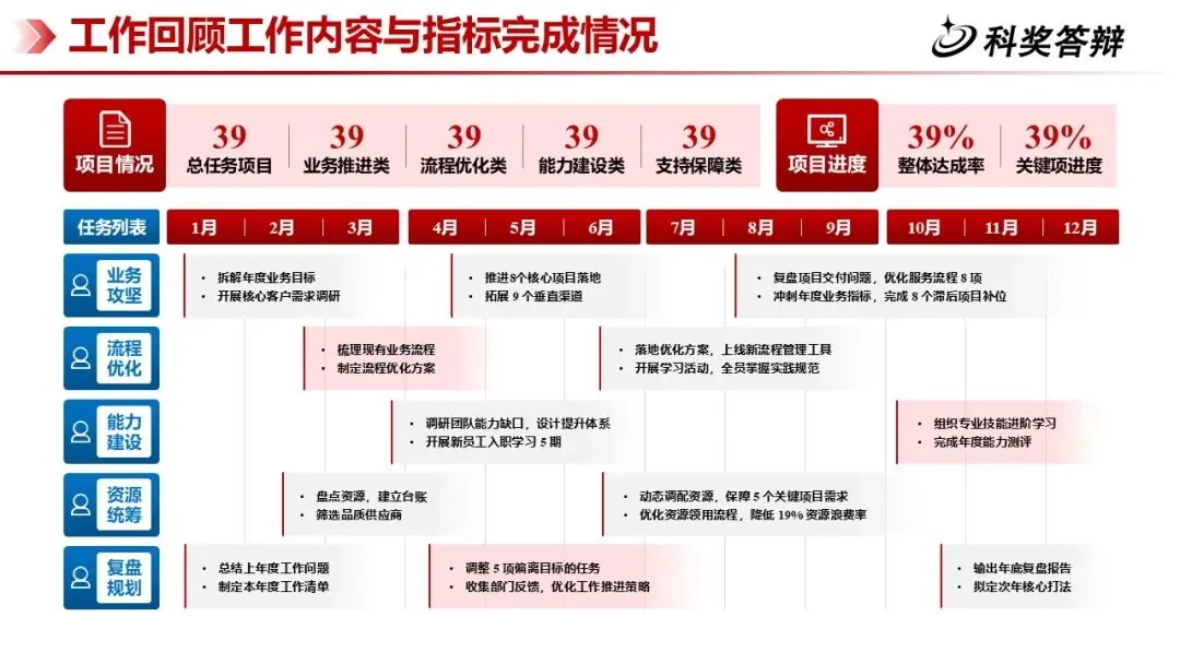 适合汇总核心数据,比如任务名称、完成进度、备注,简洁规整,方便领导快速抓取关键信息。