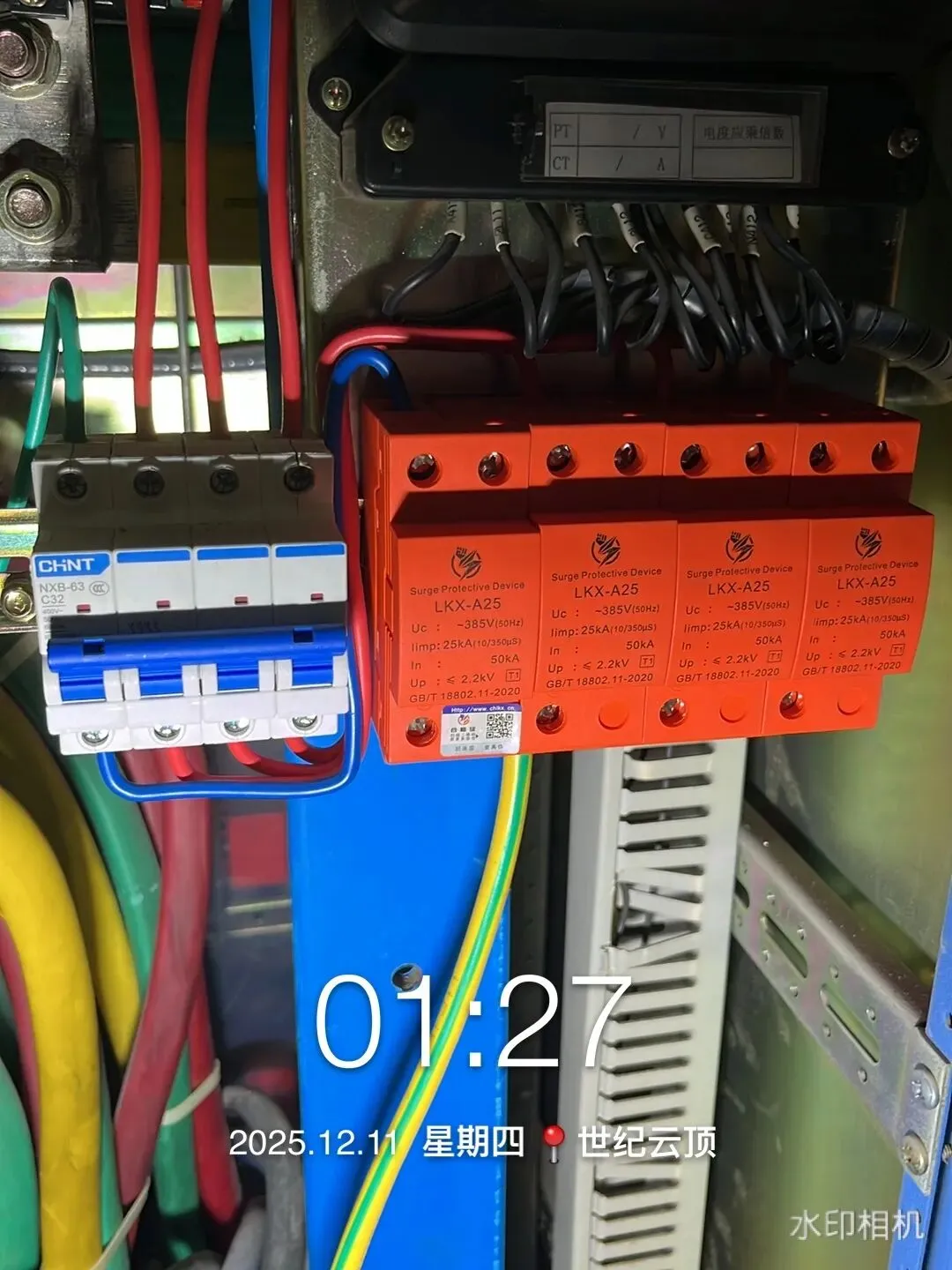 低压进线柜增设多组浪涌保护器,保护整个配电系统的所有电气设备。