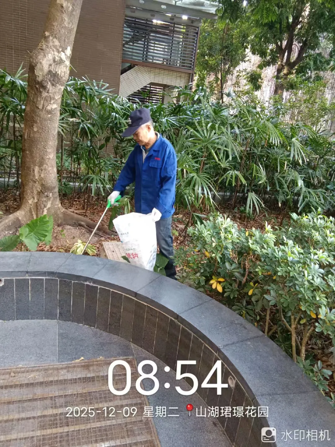 小区的每个角落,都有他们默默奉献的身影,整洁和舒适优美的环境都离不开他们的辛勤付出。营造安心舒适的家园是保洁人员共同的目标。