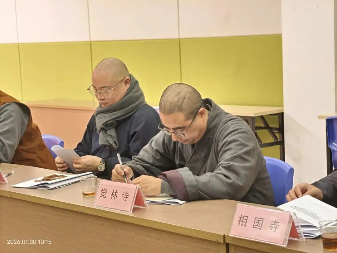 县佛协班子成员围绕2025年的工作并结合“学守重树”教育活动作述职报告。