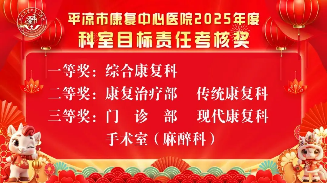副院长王宗海宣读了《平凉市康复中心医院关于表彰2025年度先进科室、先进工作者等的决定》,表彰传统康复科等“先进科室”6个、蔡创安等“先进工作者”43名、王月月等“优秀实习学生”3名、优秀科研论文获得者吴晓梅及兑现科室目标责任考核奖。一个个闪光的名字,一个个优秀的集体,是过去一年辛勤付出的缩影,更是全院上下砥砺前行、奋发有为精神的生动体现。