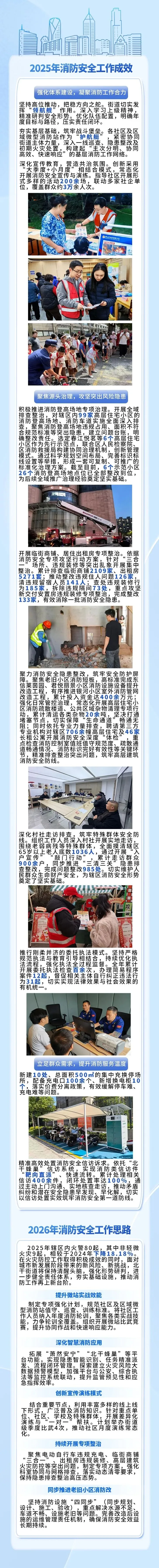 街道人武部长徐柏祥回顾2025年消防安全工作内容时指出,过去一年,北干街道办事处坚持高位统筹、精准施策、攻坚克难,全力筑牢辖区消防安全防线,不断提升消防治理体系和治理能力现代化水平。同时,他紧扣“十五五”时期消防安全工作新要求,对2026年消防安全工作重点任务进行了详细部署。