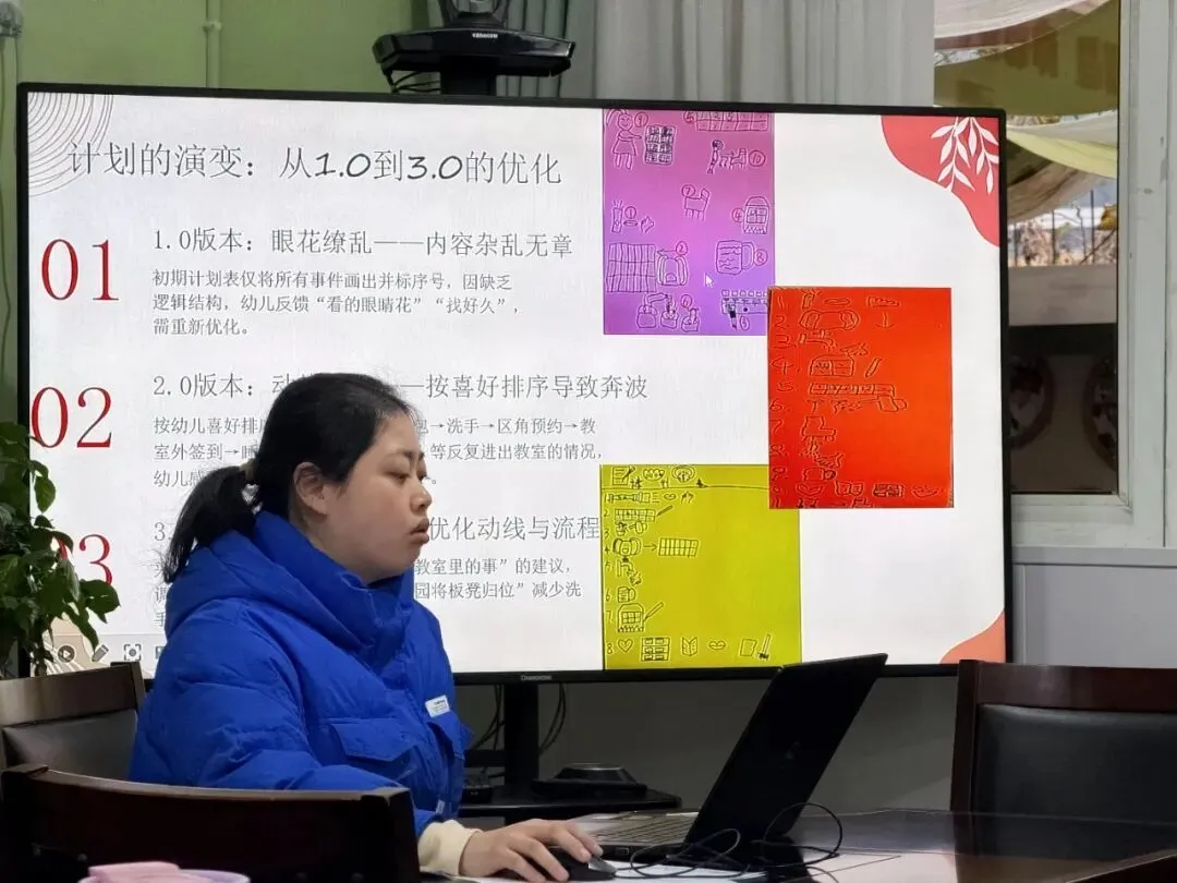 1月20日,教育教学工作总结会以PPT汇报的形式有序开展,各班教师精心选取一个典型课程案例,详细分享课程设计思路、实施过程中的亮点与难点,以及最终取得的幼儿发展成果;同时对照《3-6岁儿童学习与发展指南》《核心经验与幼儿教师的领域教学知识丛书》等专业纲领文件,聚焦一个幼儿发展领域,深入分析目标达成情况,梳理优势与不足,为后续教学工作的优化升级提供科学且详实的依据。