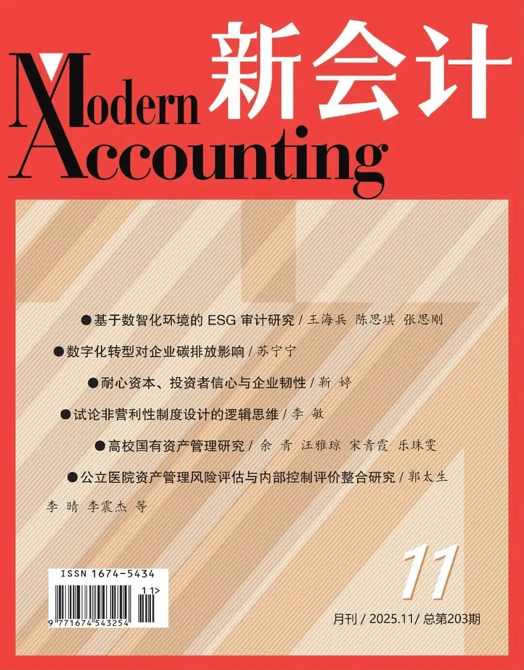 王海兵,陈思琪,张思刚.基于数智化环境的ESG审计研究[J].新会计,2025,(11):3-11.封面文章