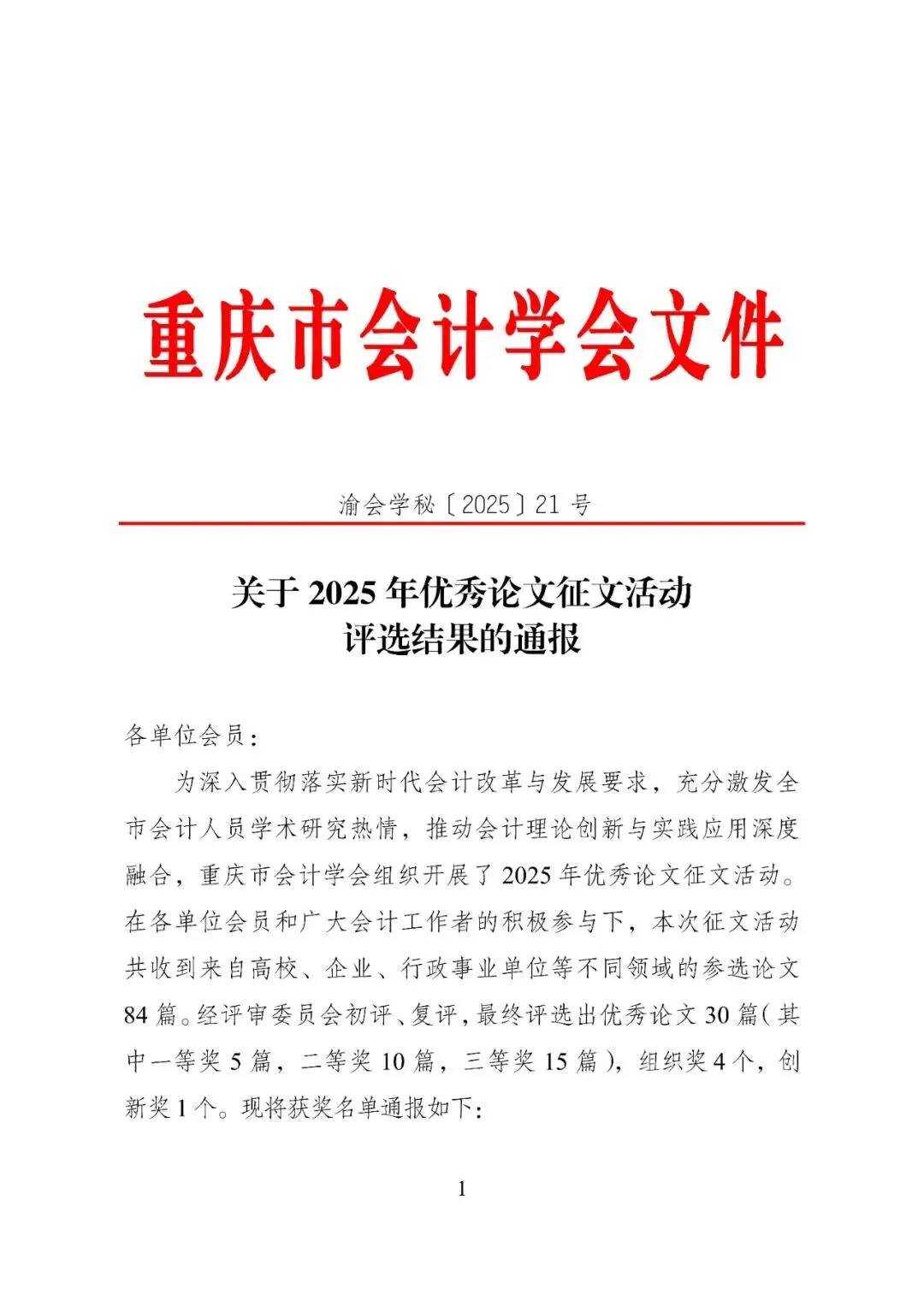作为研究生指导老师指导人本团队研究生严渝成功立项重庆理工大学研究生科研创新项目(联合项目)《<孟子>内部控制思想探究》(项目编号:gzlcx20253466),在研。