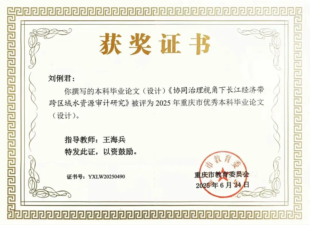 作为研究生指导老师指导人本团队研究生孟晨阳成功立项重庆理工大学研究生科研创新项目(联合项目)《乡村振兴背景下路长制审计框架与路径研究》(项目编号:gzlcx20253435),在研;