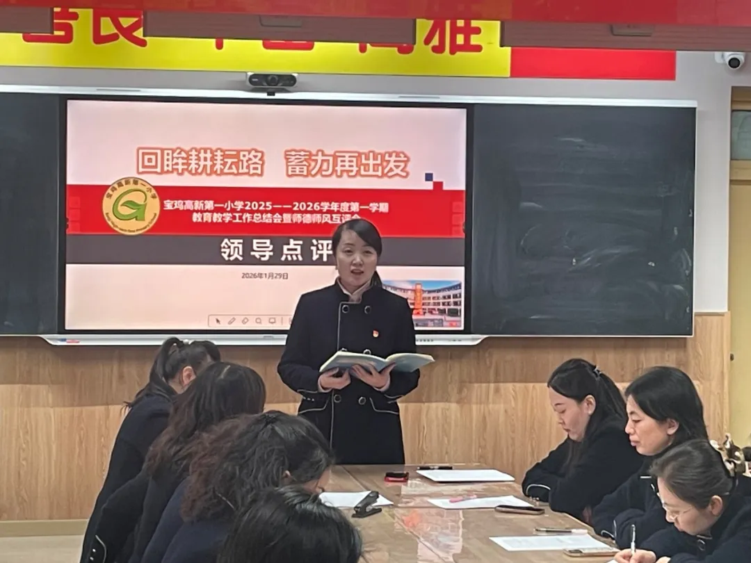 1月29日下午,宝鸡高新第一小学全体教职工齐聚一堂,以6个小组为单位召开全学期教育教学工作总结会,凝聚育人共识,擘画奋进蓝图。