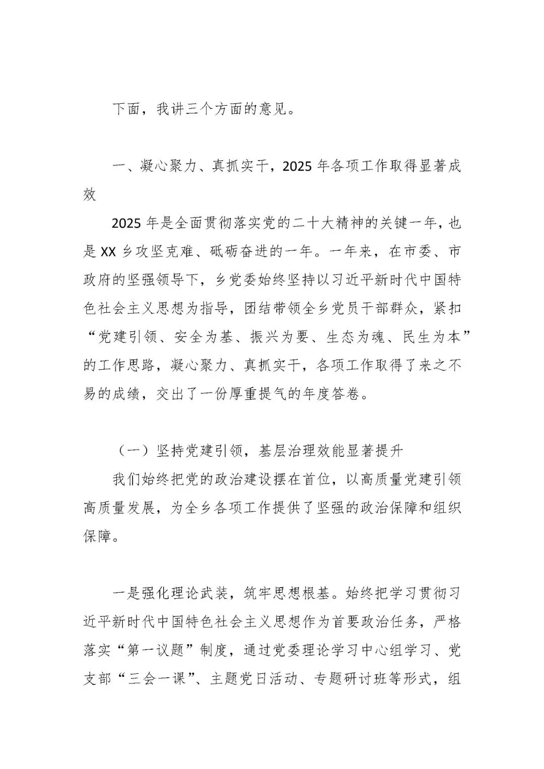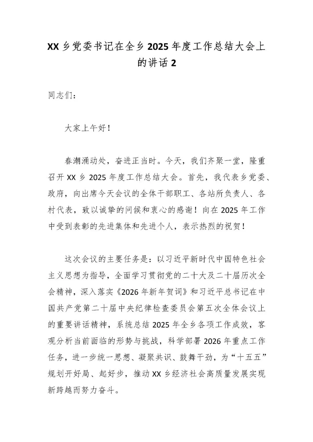 >XX乡党委书记在全乡2025年度工作总结大会上的讲话2