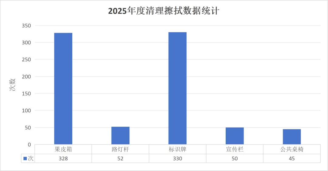 果皮箱每日擦拭1次,年计328次,每周专项保养1次,年计51次;