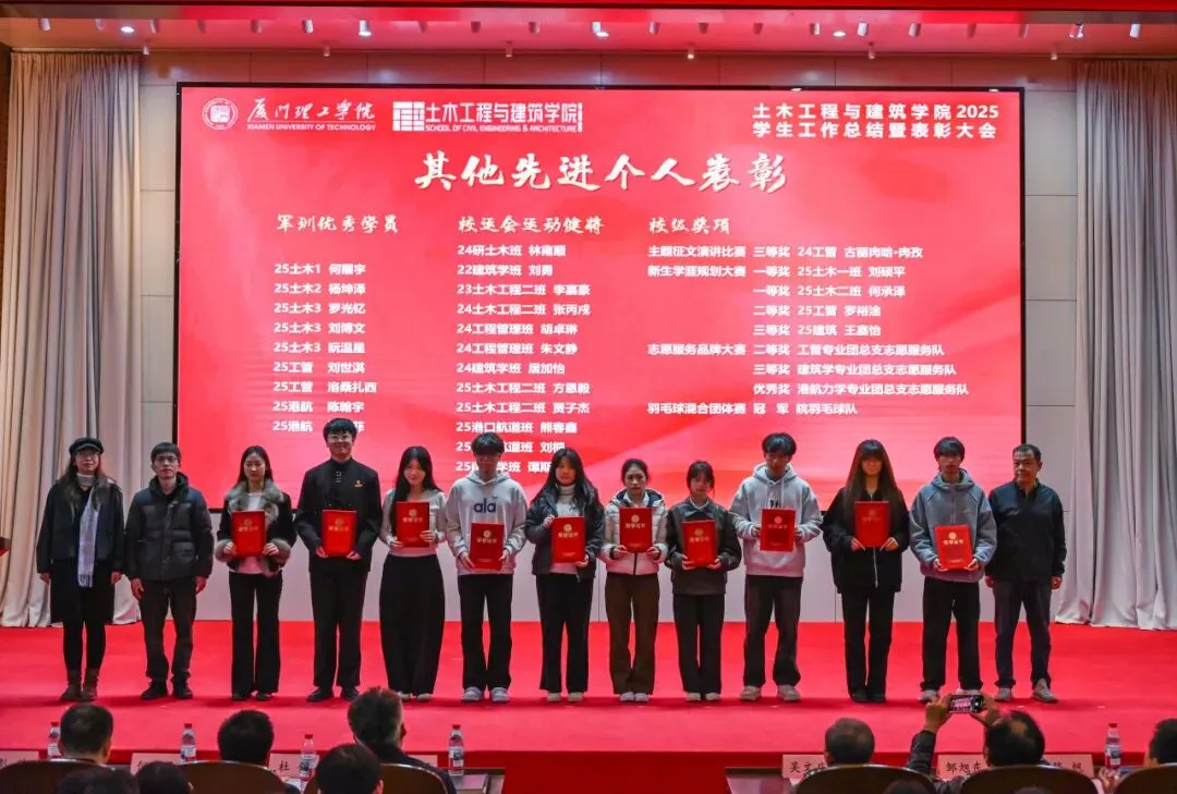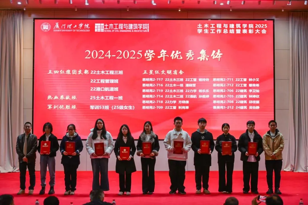 1月21日,土木工程与建筑学院在学术报告厅召开2025年学生工作总结暨表彰大会。学院领导班子、校友分会及关工委代表、系主任、班主任、辅导员和学生代表参会。