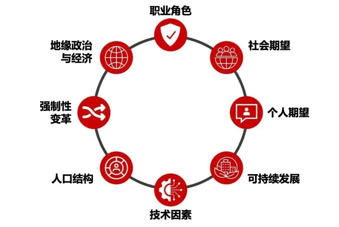 报告预测,未来十年将有八大变革驱动力重塑会计与财会行业职业发展格局。按重要性排序为:技术因素、个人期望、地缘政治与经济、职业角色、强制性变革、可持续发展、社会期望和人口结构。