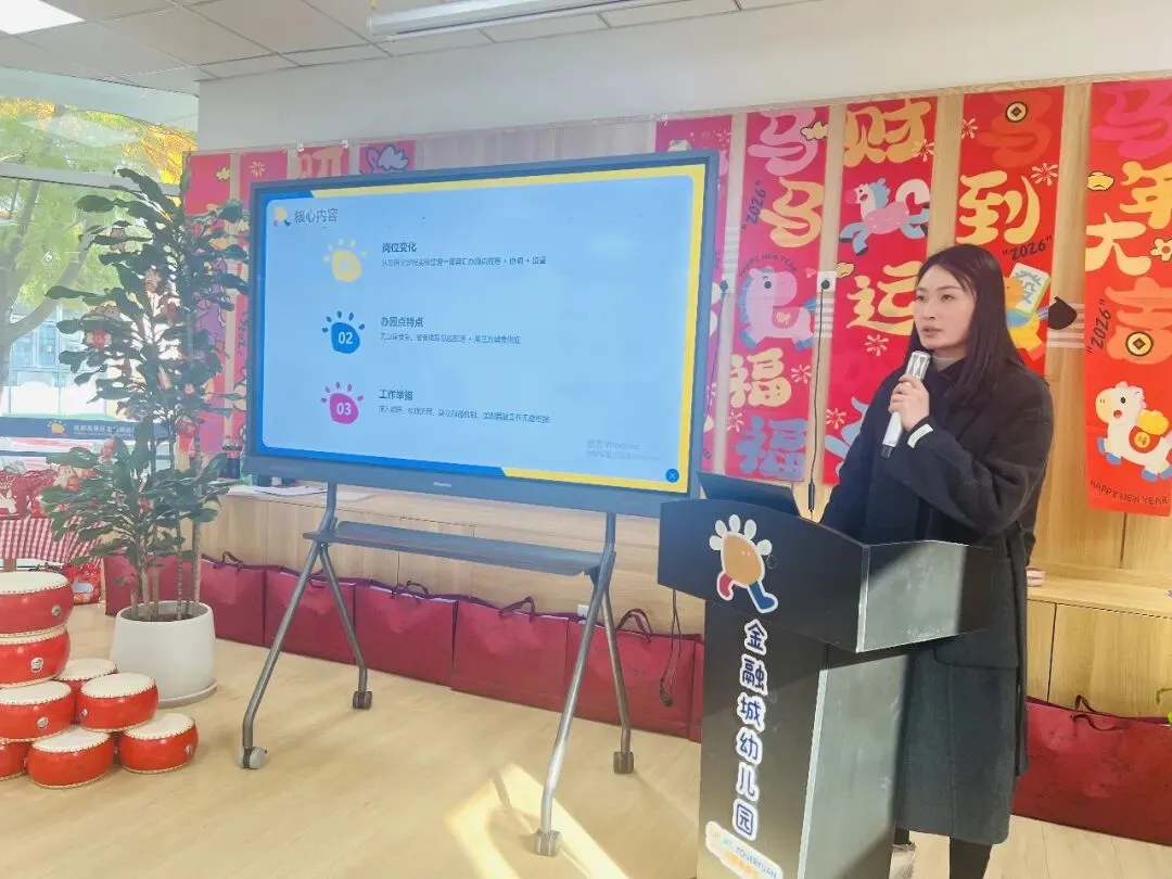 办公室坚持党建引领,深耕内涵发展,统筹协调各项事务,管理对外沟通,保障园所行政工作有序运转;保教部门深耕教育教学,优化课程体系,强化教师培训与教研活动,全力提升保教质量;后勤部门筑牢安全防线,做好物资保障、园区环境维护与食品安全管理,为师生营造安全舒适的校园环境;财务人员严格遵守财经制度,规范经费收支、预算核算与票据管理,保障园所财务合规透明;全体人员齐心协力,圆满完成年度各项工作任务,后续将持续优化工作,助力园所高质量发展。