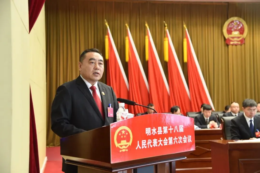 1月31日,明水县人民法院党组书记、院长赵玉春在明水县第十八届人民代表大会第六次会议上作法院工作报告。