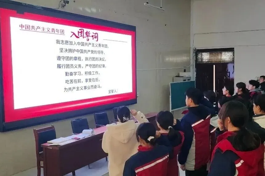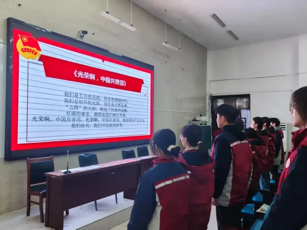 全体同学起立,齐唱中国共产主义青年团团歌《光荣啊,中国共青团》。激昂的旋律、嘹亮的歌声,唱出了涡阳一中团员青年的青春朝气与奋进决心。
