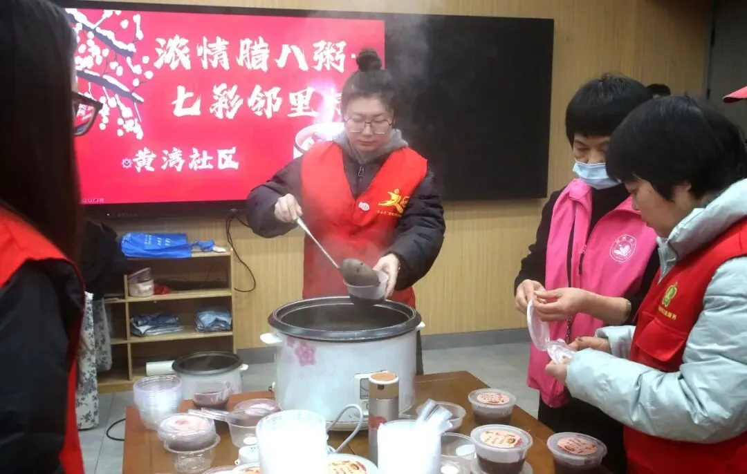 农历腊月初八,寒冬清晨的薄雾还未散尽,黄湾社区已飘起阵阵粥香。社区以“浓情腊八粥·七彩邻里情”为主题,开展融合传统民俗与社区温情的腊八节活动。活动以“粥”为媒,串联起邻里情、志愿心与文化魂,为寒冬注入浓浓暖意。