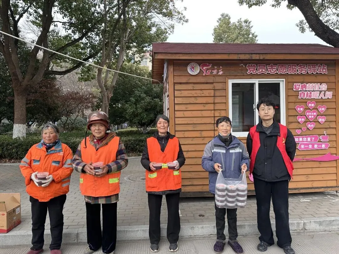 腊月初八寒意浓,一碗热粥暖人心。为切实传递对新就业群体的关怀,让快递员、环卫工人等户外劳动者,在寒冬中感受温情与暖意,1月26日早上,黄湾社区户外劳动者爱心驿站开展“浓情腊八节,粥到暖人心”—新就业群体关爱活动,以一碗碗热气腾腾的腊八粥,为奔波忙碌的新就业群体送上节日祝福。