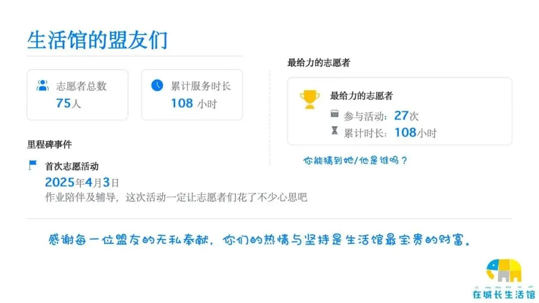 遵义阳光松源在城长生活馆与道真阳光八一在城长生活馆每周开放六天。在生活馆,他们可以静心完成作业、自由绘画、探索绘本,或在志愿者陪伴下玩集体游戏。这里不仅提供安全稳定的活动空间,更帮助孩子培养学习习惯、发展兴趣,并在陪伴中感受支持与归属,让课后时光充实而有光。