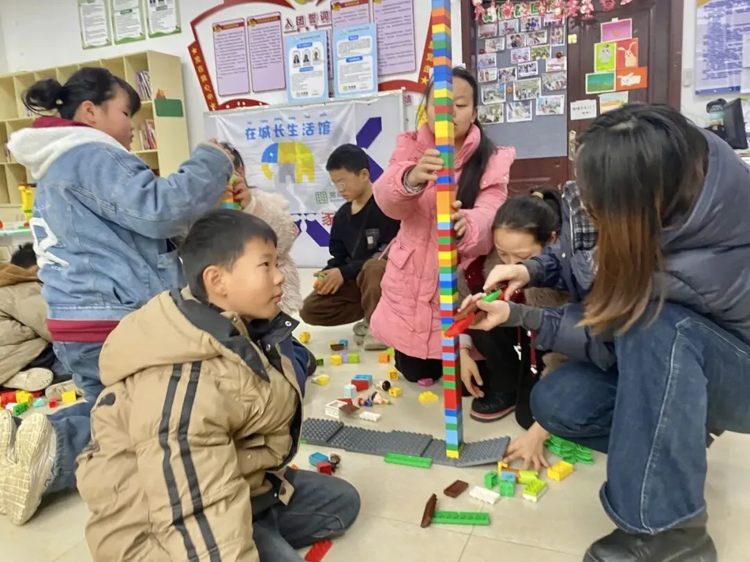 遵义阳光松源在城长生活馆联合遵义医科大学、遵义师范学院外国语学院等高校志愿者,为儿童开展绘画、手工、积木搭建、漆扇制作等活动。这些活动远不止是简单的游戏与娱乐,它们如同涓涓细流,润物无声地滋养着社区儿童的成长,发挥着多维度的积极作用。
