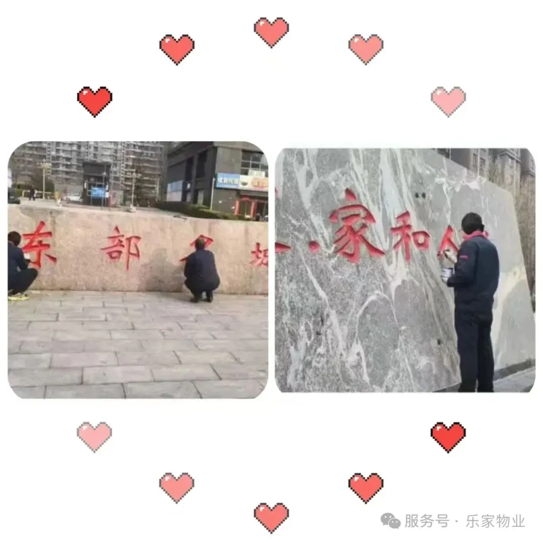 6、新年新气象,小区南大门、广场大石头红字刷漆