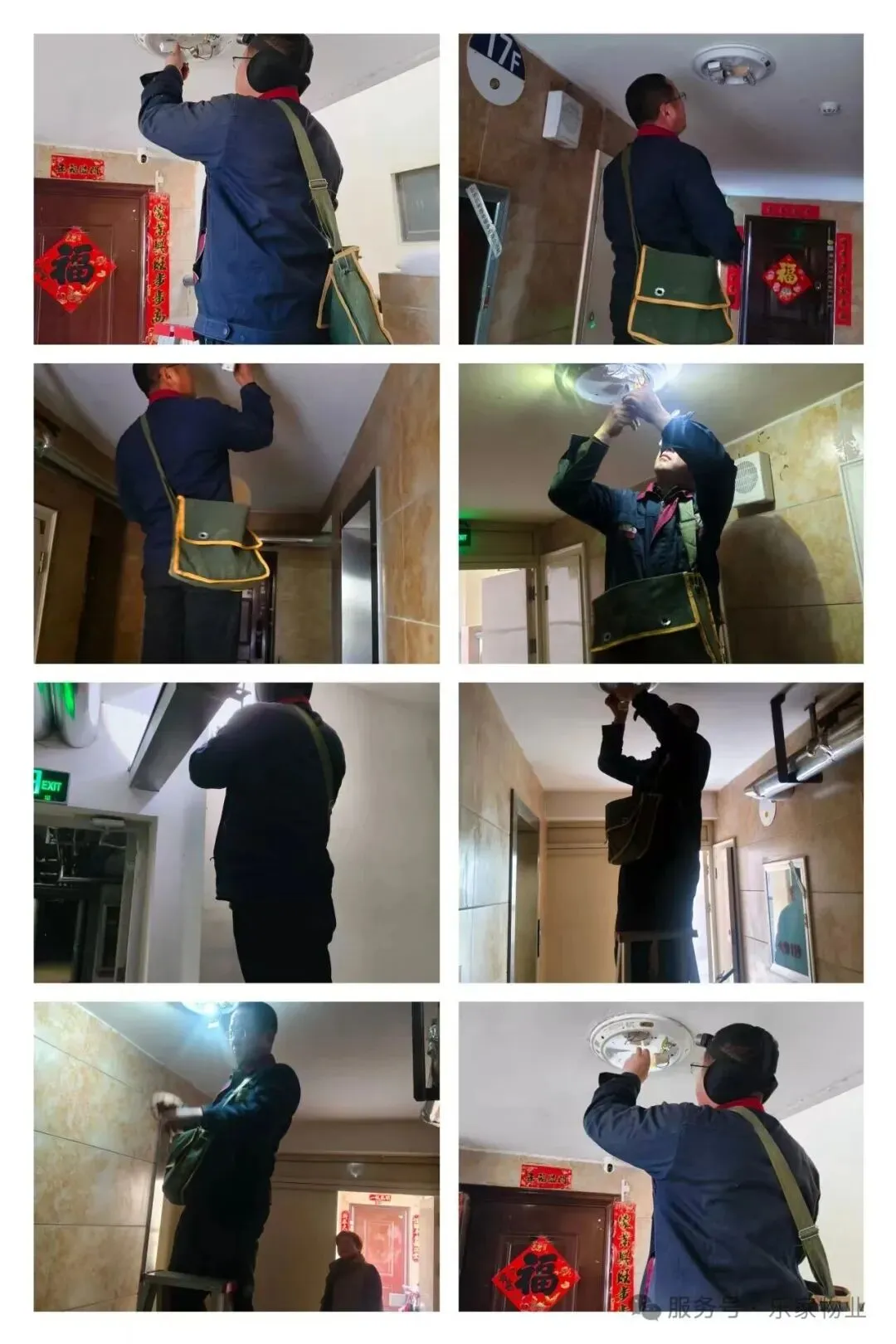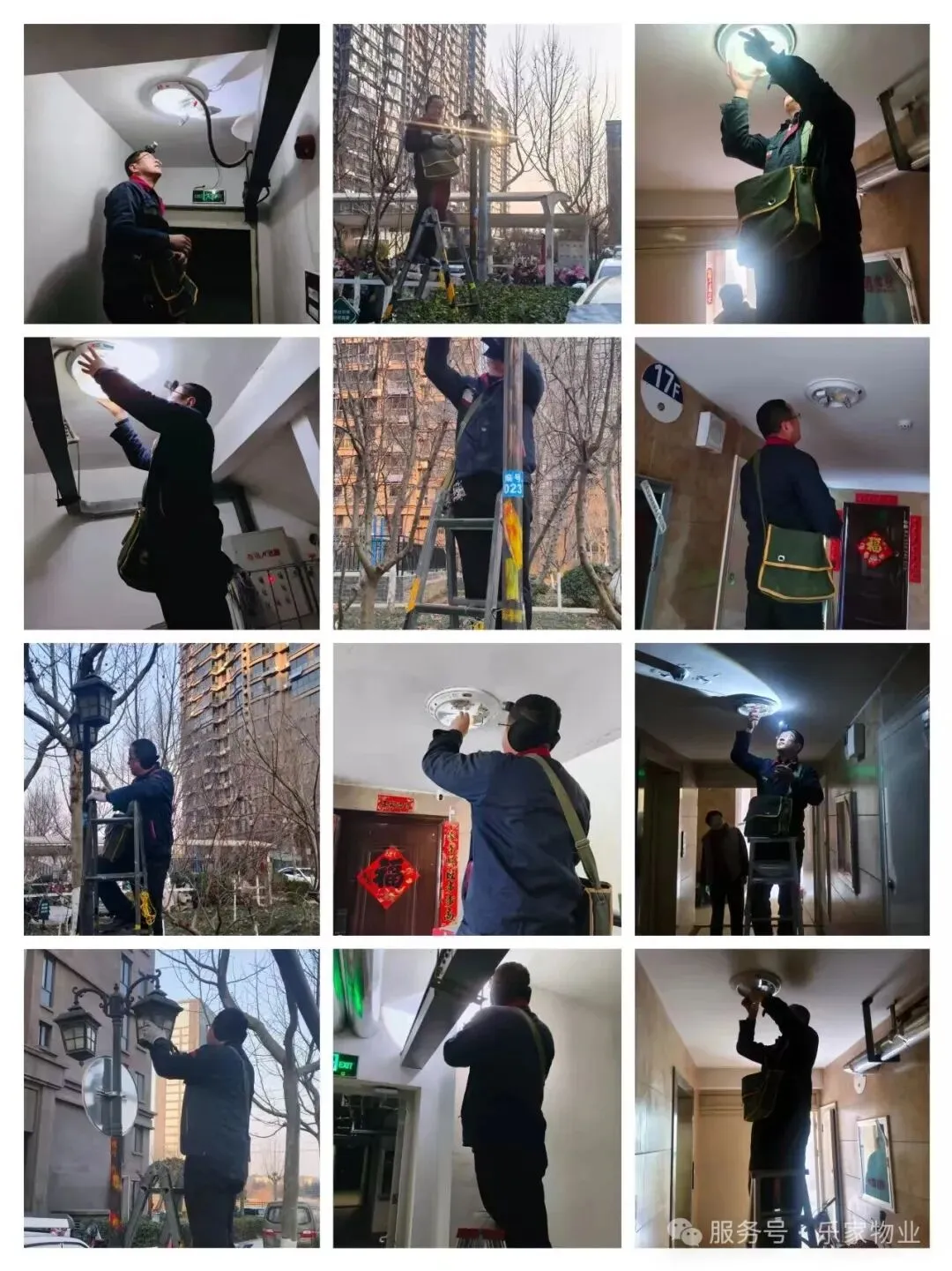 2、更换维修公共区域路灯、走廊及电梯内照明,方便业主出行;