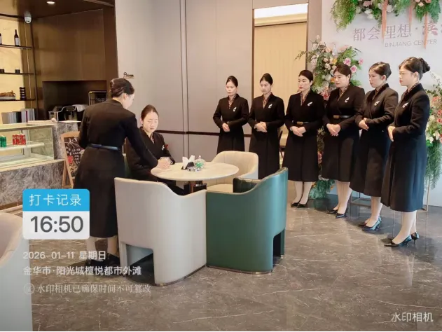 每日检查在岗人员仪容仪表,完成来访客户接待,做好茶水服务;