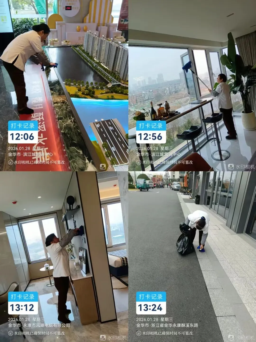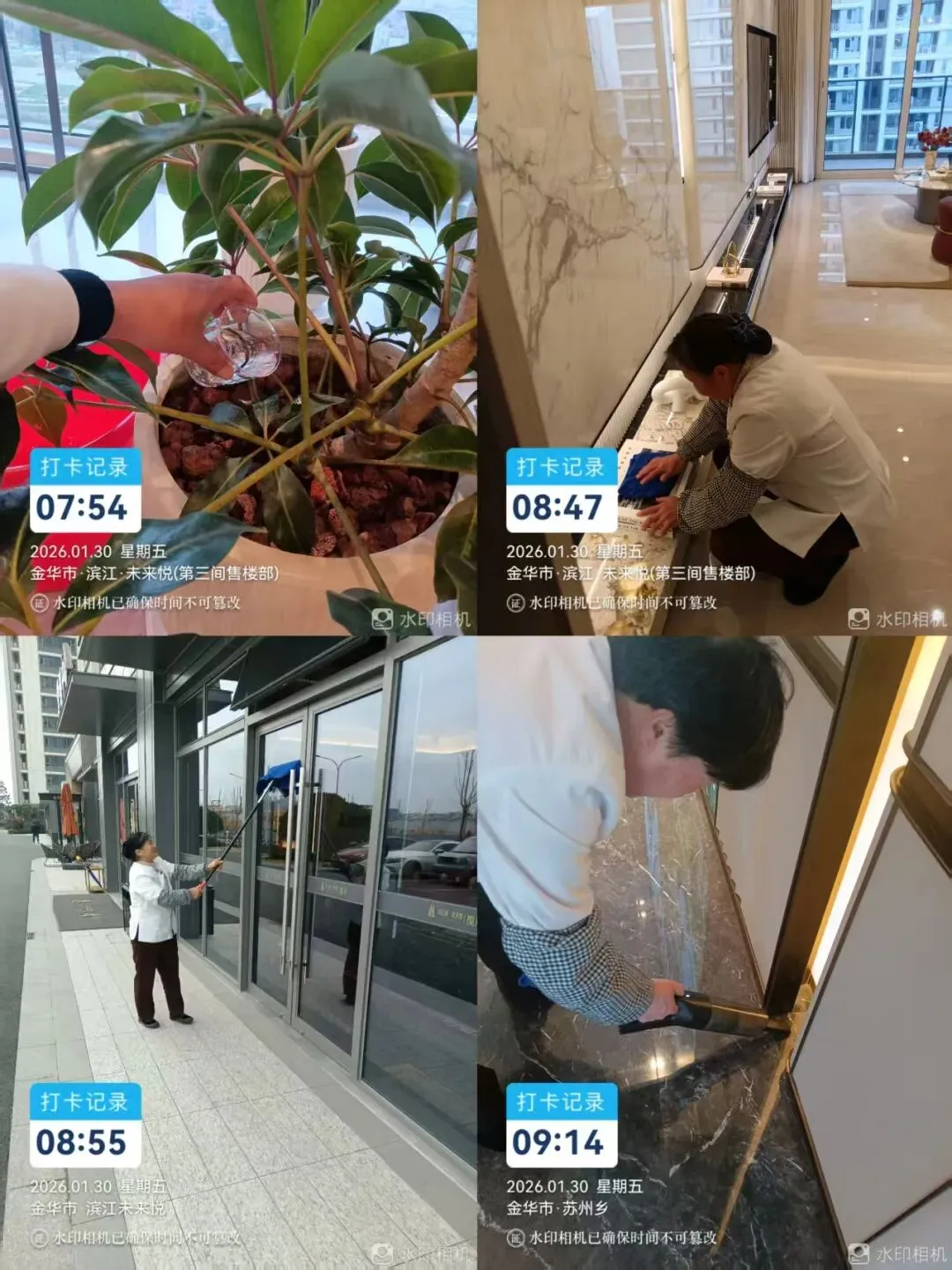 2. 每日做好销售大厅、办公区、外围绿化带、参观通道、停车场、样板房区域的循环保洁工作;