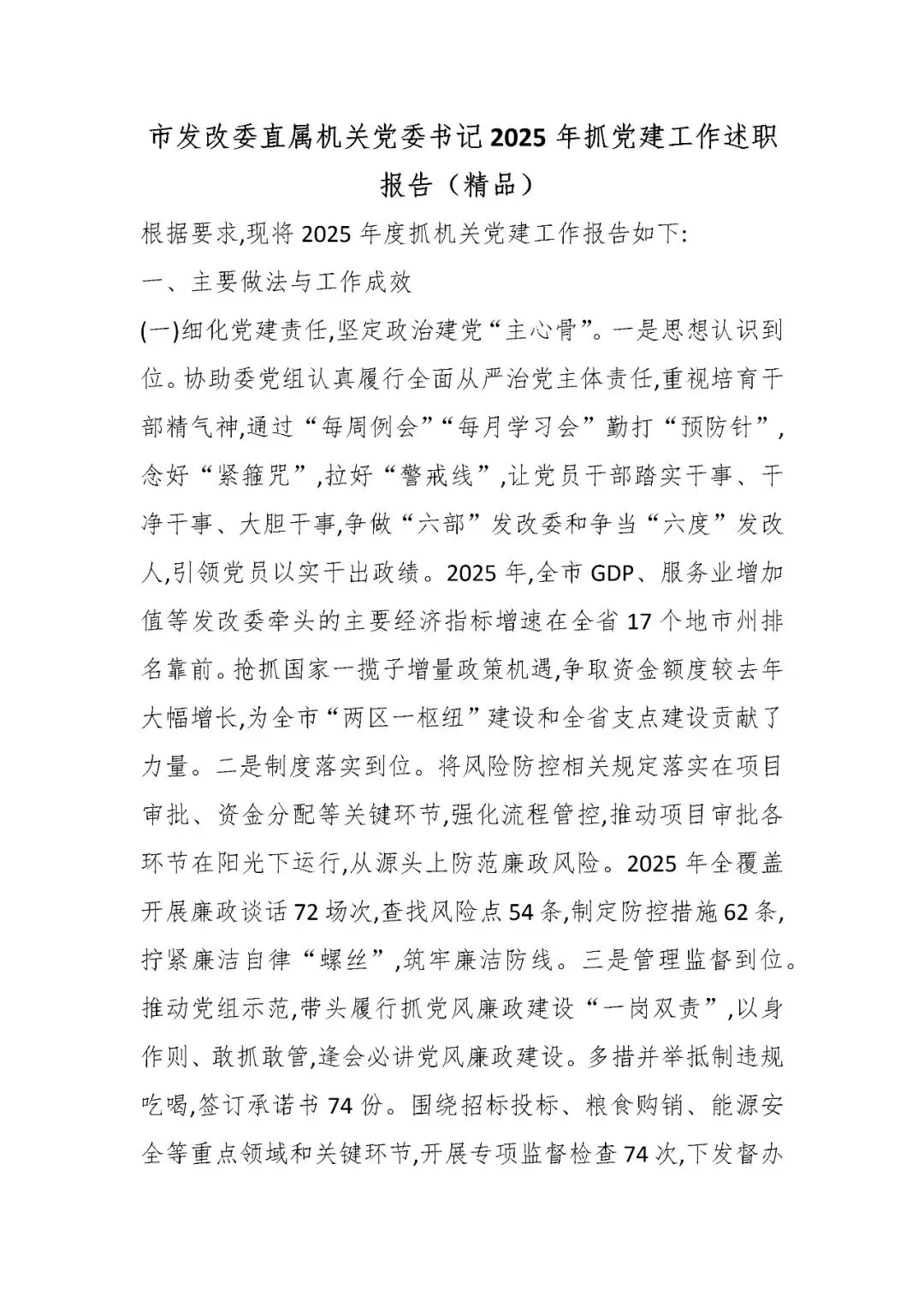 市发改委直属机关党委书记2025年抓党建工作述职报告(精品)