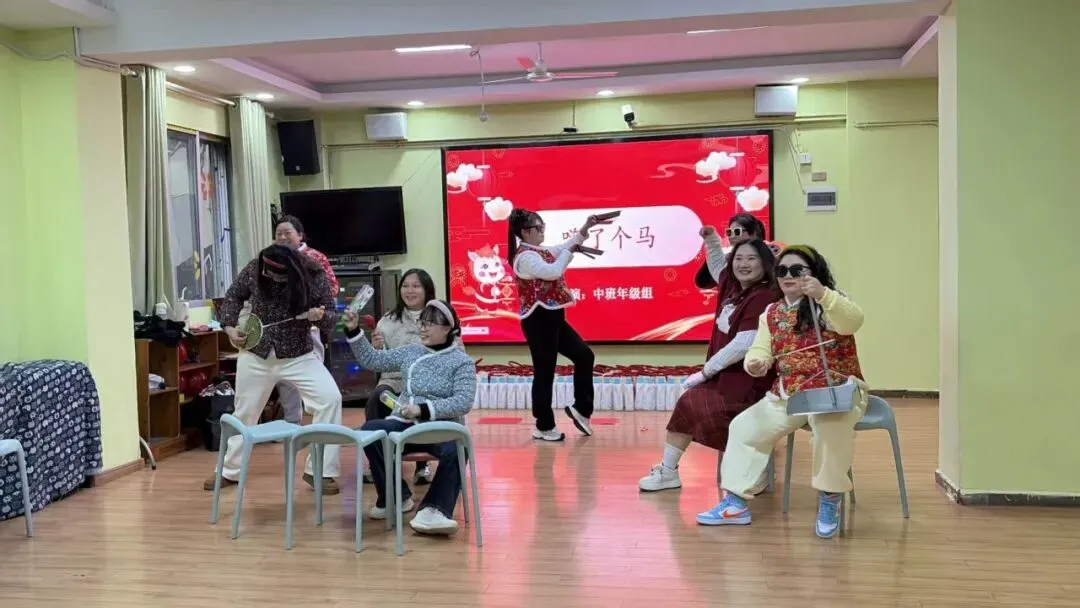 中班年级组的舞蹈《嗨了个马》紧扣马年主题,动感舞步尽显青春活力;小班年级组的古装小品《咖妃驾到》创意十足,搞笑剧情与精彩表演引得掌声雷动,现场气氛一次次被推向高潮。