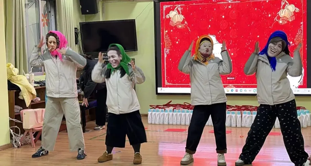 行政后勤组的三句半《夸夸我的幼儿园》,以朗朗上口的台词演绎园所美好;大班年级组的《歌曲串烧》幽默改编流行曲目,沉浸式展现幼教日常的欢乐;