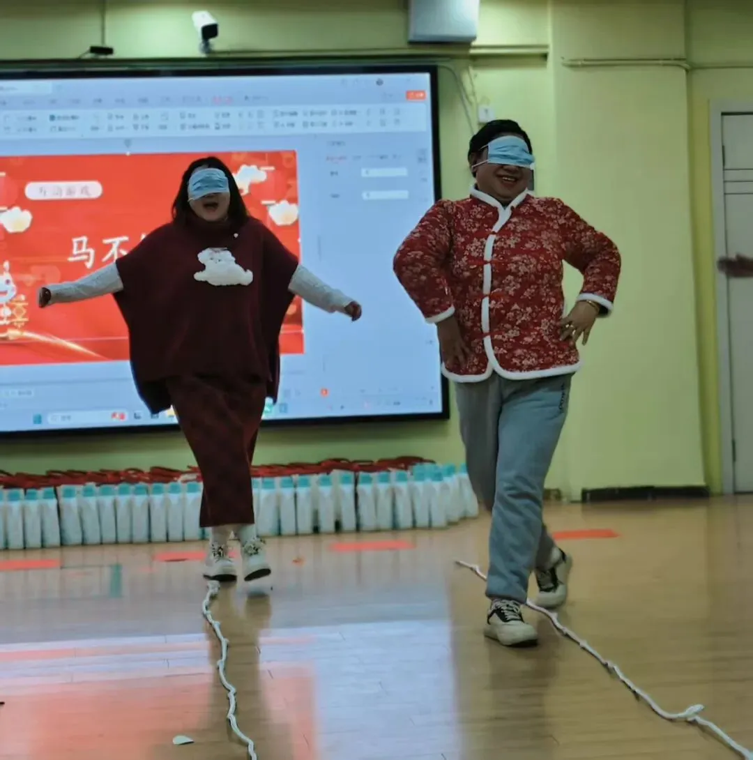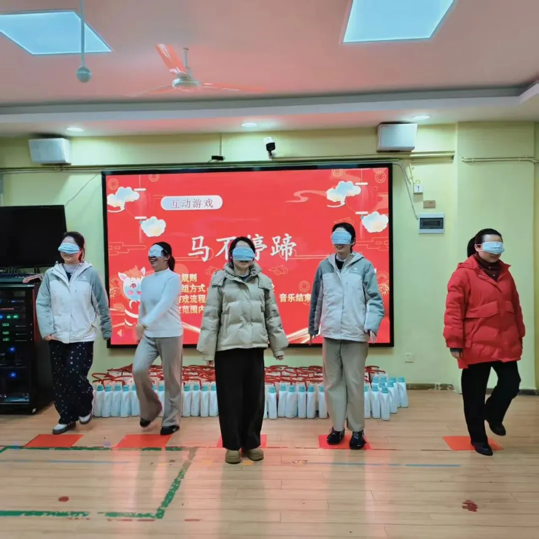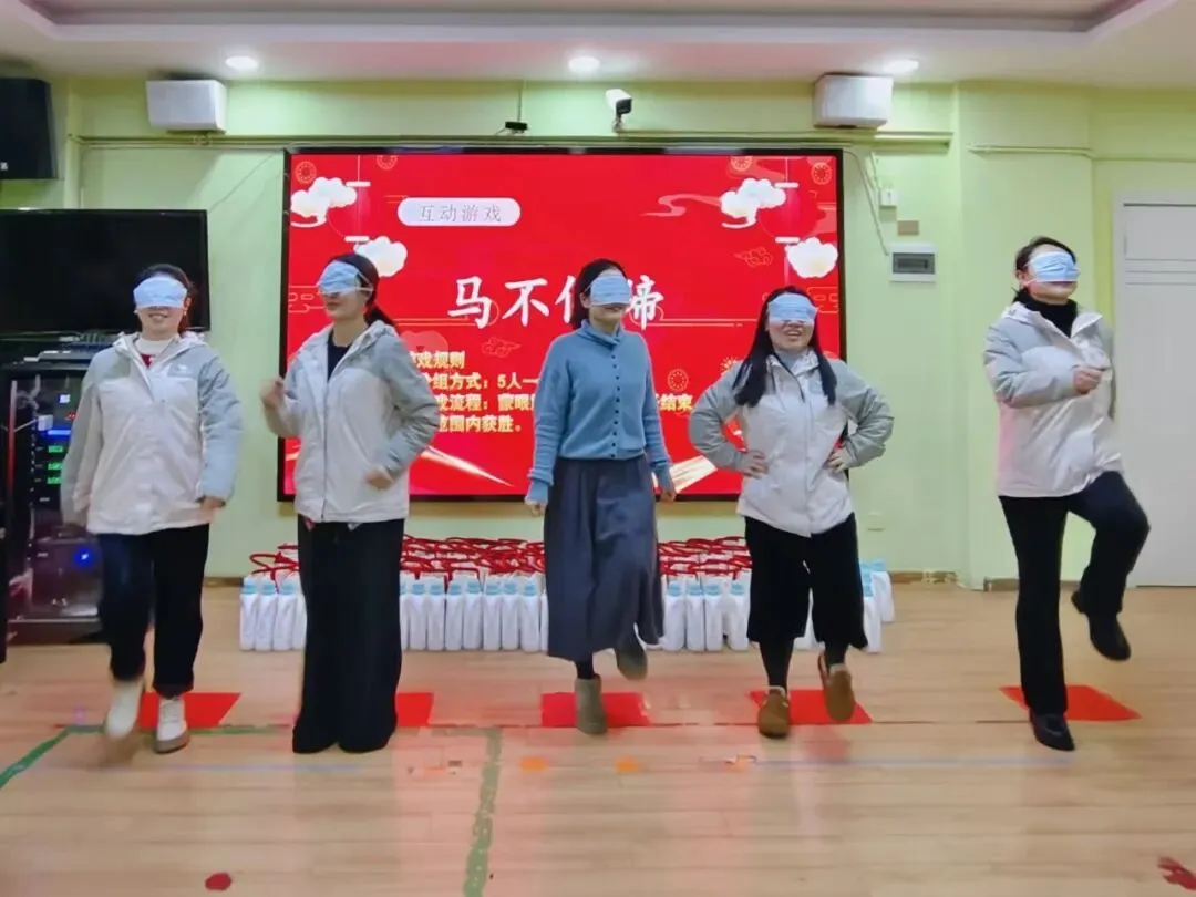 精彩表演过后,马年专属趣味游戏如期而至。“马不停蹄”考验老师们的方向感与节奏感,蒙眼踏步的比拼扣人心弦;“一心不能二用”要求大家在保证气球不落地的同时快速穿衣,手脚并用的模样令人忍俊不禁。游戏过后,获胜者收获了精美奖品,欢声笑语中,团队凝聚力与归属感悄然升温