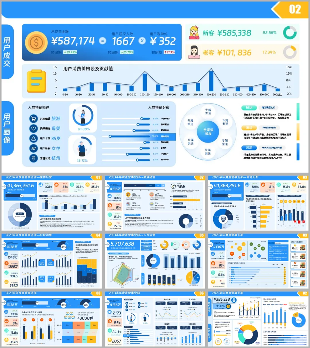 销售数据是企业决策的重要依据,合适的模板能让数据展示更清晰直观,帮助团队快速理解销售趋势和业绩表现。使用专业的数据图设计,让销售汇报更具说服力。
