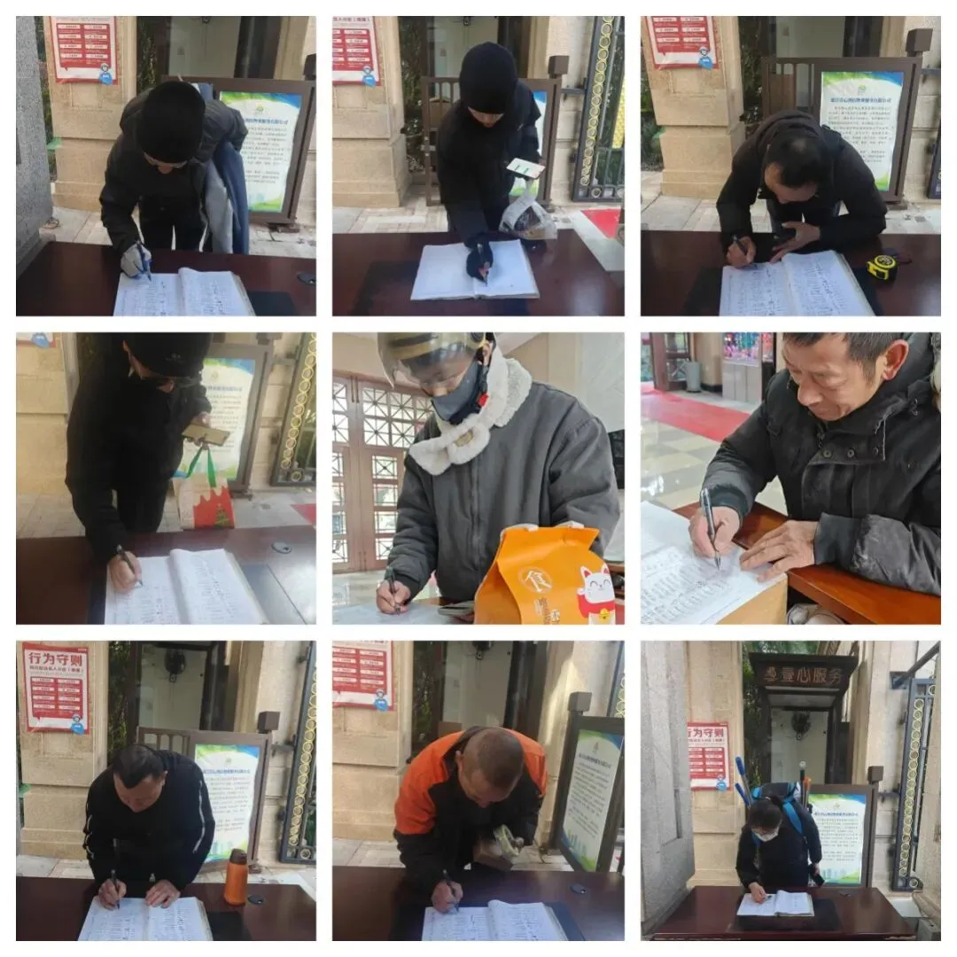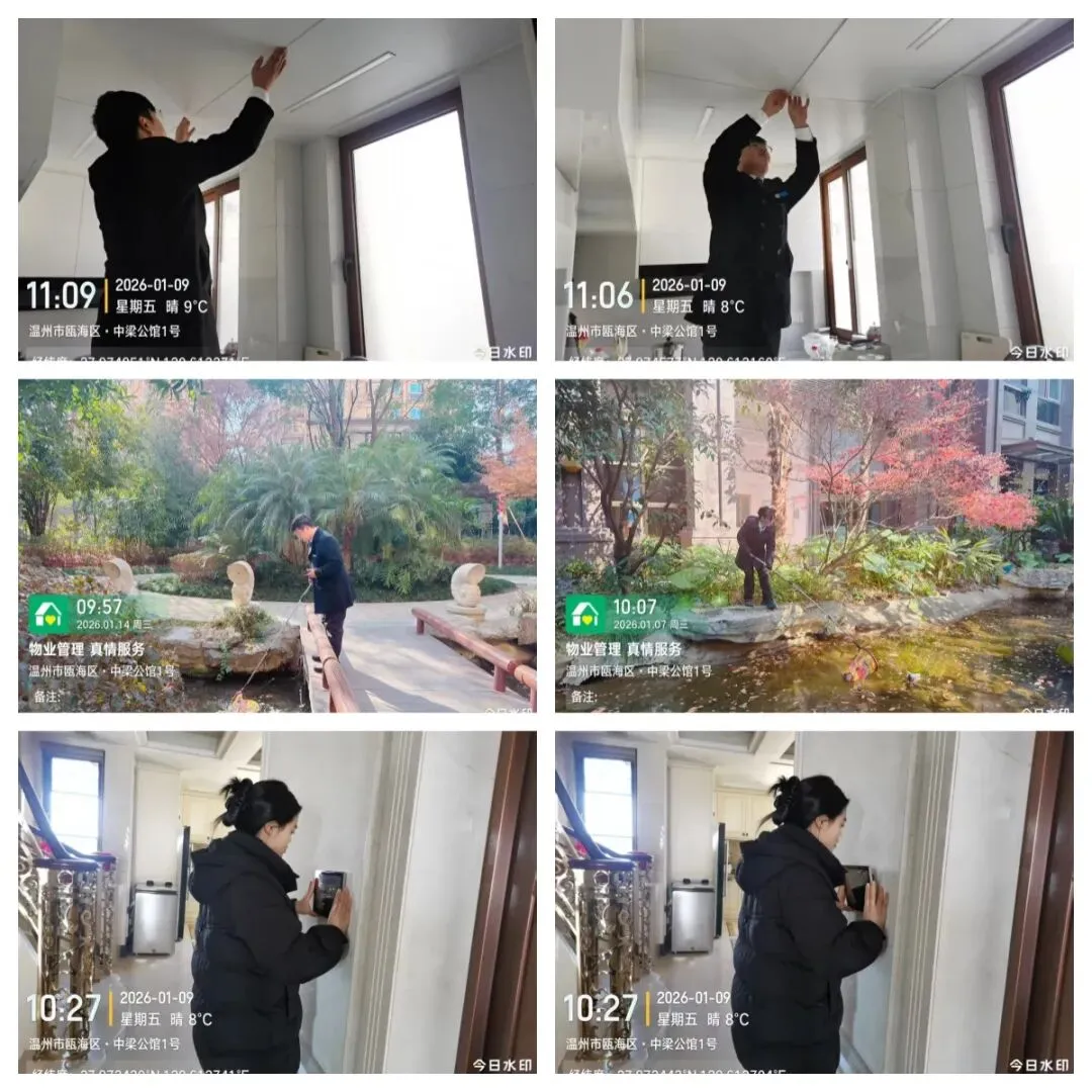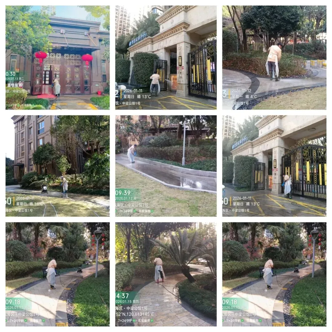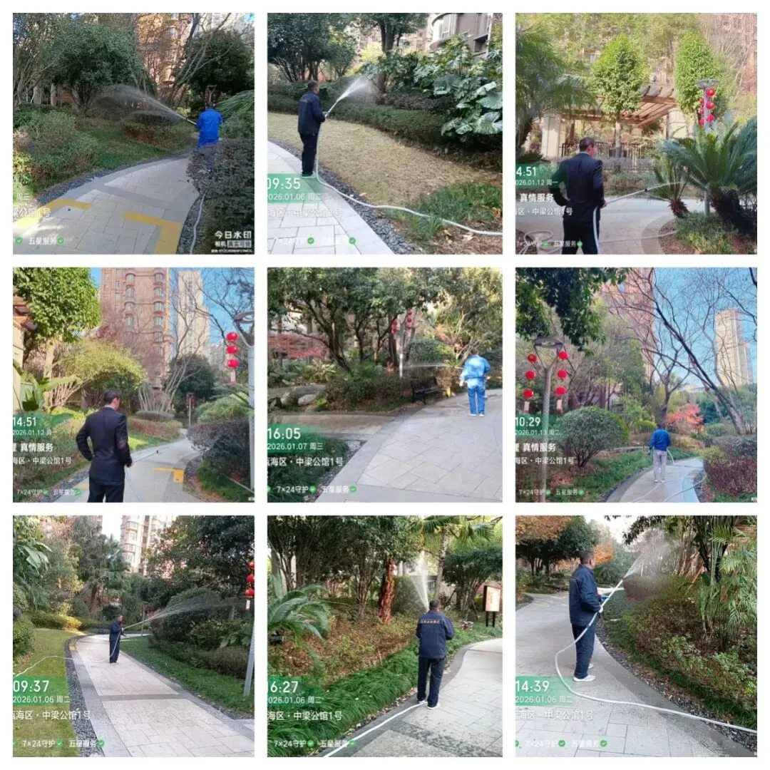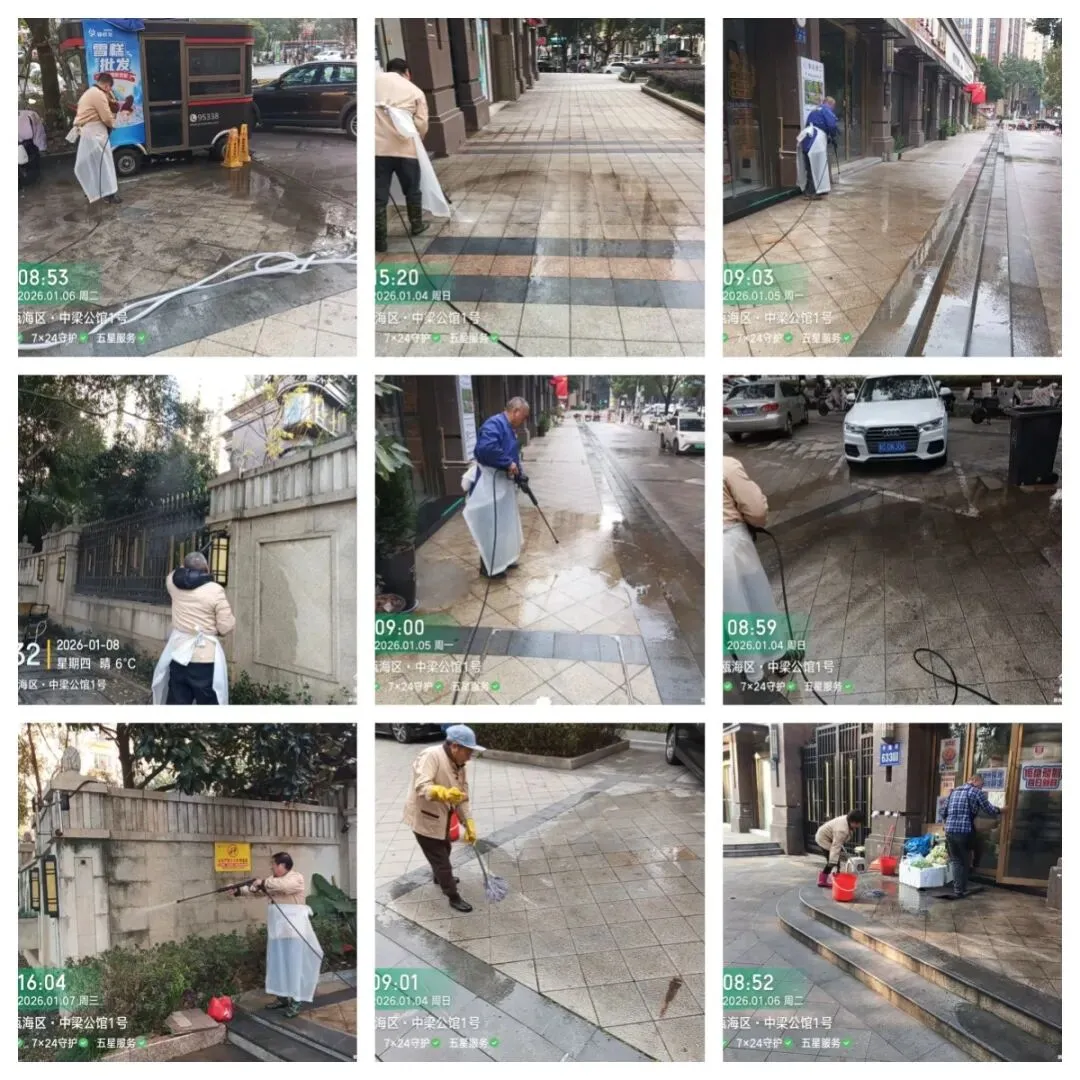 秩序部日常违停自行车处理、河道落叶、帮助业主挑衣物、污水管处理 为了保持小区整洁美观,我们定期对地下室、楼道、电梯轿厢、入户厅、