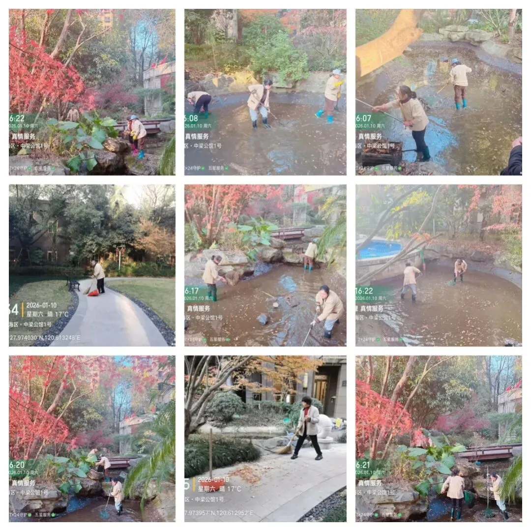 园区路面、绿化带、景观河道树叶打捞、,尽可能得做到入住经过的每一个
