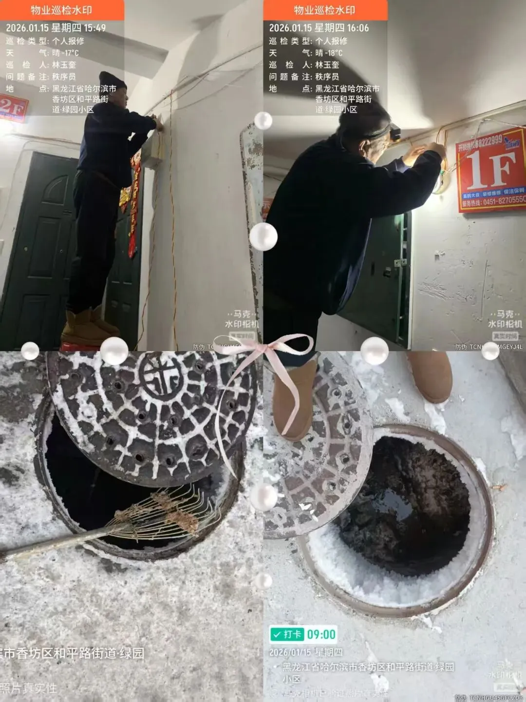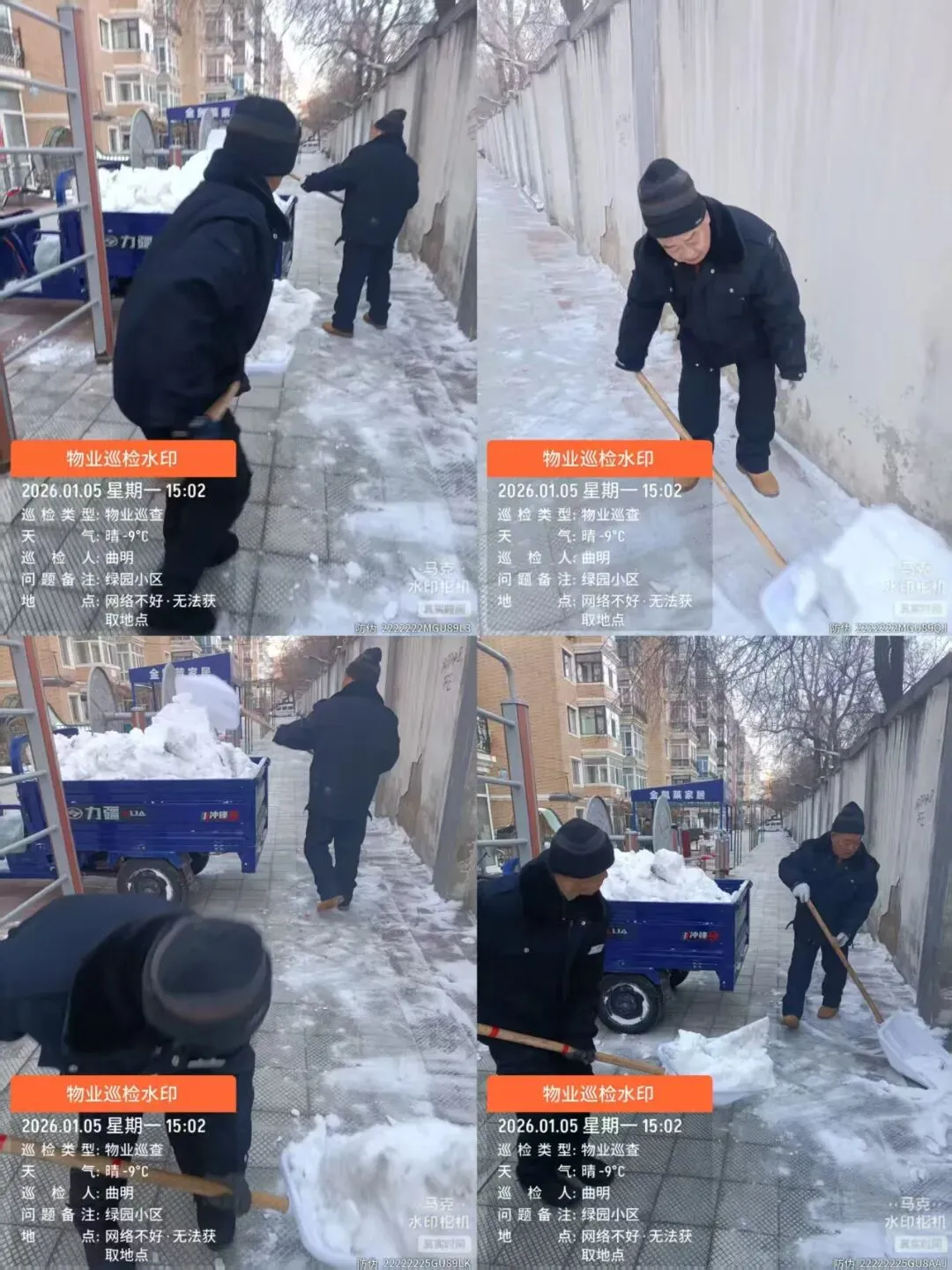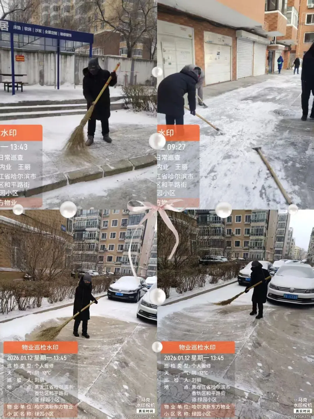 一月份,在内保楼道清理工作中,保洁团队严格按照作业标准,对小区各楼栋楼道进行全面清洁。每日定时清理楼道内堆积的杂物、废弃垃圾,重点排查楼梯拐角等易堆积垃圾区域,确保楼道畅通无阻。同时,坚持每周对楼道进行湿拖作业,尤其下雪后针对楼道地面的污渍、灰尘,反复湿拖擦拭,有效改善了楼道地面卫生状况,减少了灰尘滋生。外保工作保洁人员对园区道路、绿化带、休闲广场等公共区域进行定时清扫,及时清理业主丢弃的生活垃圾、落叶、树枝等杂物,针对雪后地面湿滑易结冰 ,必须及时彻底清理责任片区的积雪积冰。此外,定期对楼道内楼梯扶手、窗台进行彻底擦拭,以此提升了园区公共区域整体卫生水平。得到广大业主的好评。后续,保洁部工作人员将继续优化清洁作业流程,增加对昏暗角落的清洁频次,进一步提升小区环境卫生质量。尊敬的各位业主/住户: