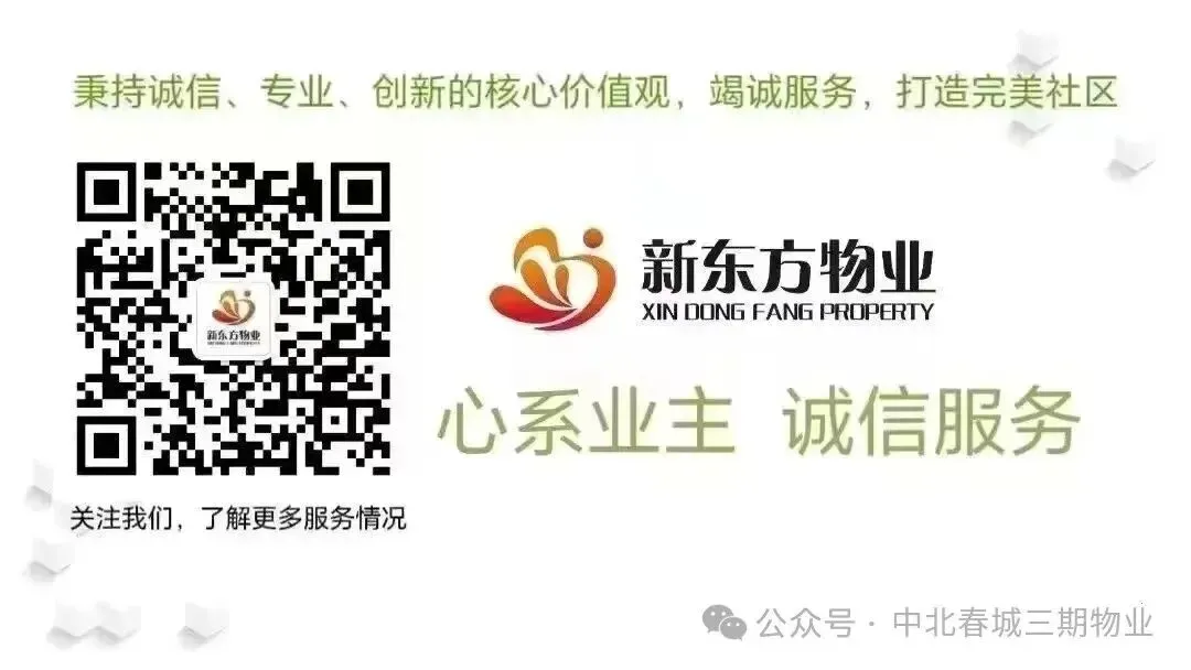 春临福邸,园暖万家。再次感谢您一年来对新东方物业工作的理解、支持与配合!新的一年,我们将继续秉持初心、用心服务,愿与全体业主家人携手同心、笃行致远,共同打造更安全、更舒适、更温馨的美好家园!