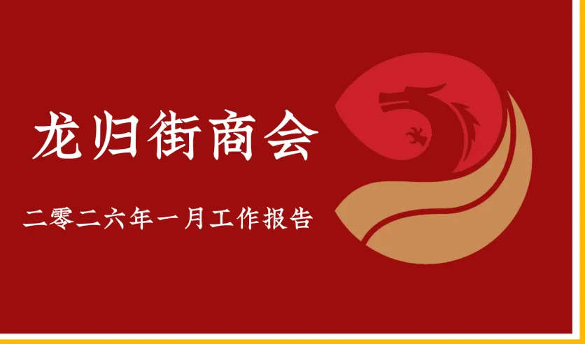 2026年1月,龙归街商会工作推进扎实、成果丰硕。商会在本月荣获全国“四好”商会建设优秀案例,实现了从省级到国家级荣誉的跨越,社会影响力持续提升。成功举办“龙腾五载·新程再启”五周年庆典,全面展示了商会五年发展成果,增强了会员凝聚力和区域影响力。对外交流与合作进一步深化,组织及参与各类交流、会议、活动,有效拓展合作网络、凝聚区域发展共识。内部建设持续强化,召开多场专题工作会议,接受党建调研指导,健全长效工作机制。会员服务务实精细,开展企业走访,精准对接会员需求;吸纳新会员,稳步壮大组织队伍;常态提供法律咨询,助力企业合规发展;落实会员生日关怀,营造温馨家园氛围;并通过会长轮值制度,有效激发领导班子参与活力,提升服务响应效率与组织凝聚力。本月各项工作有序推进,彰显了商会“服务会员、联结政企、助力发展”的职能定位,为新年工作开局奠定了坚实基础。