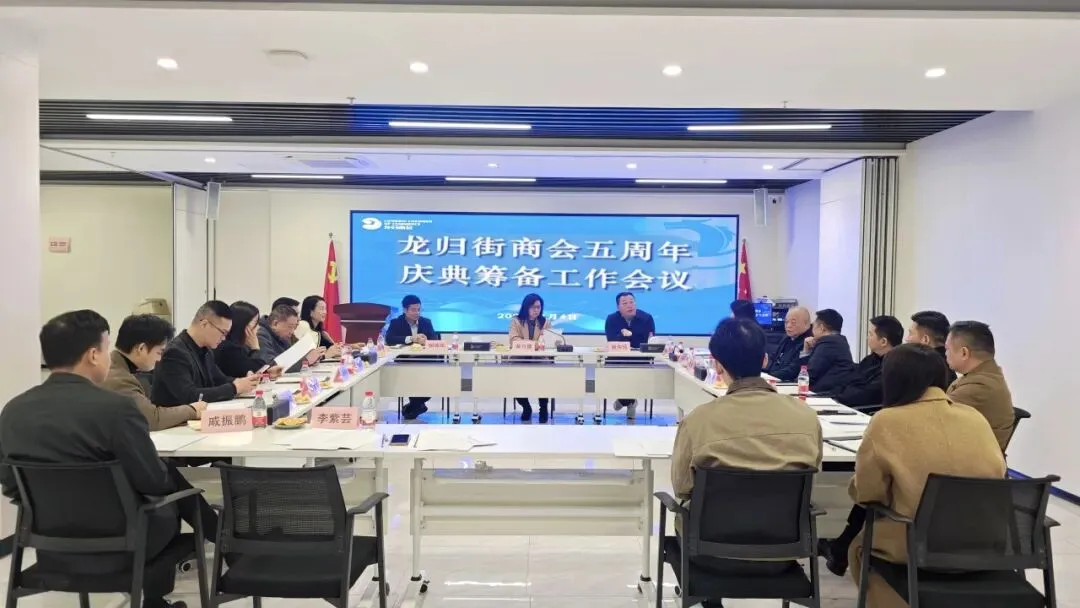 龙归街商会五周年庆典筹备工作会议在商会会议室圆满召开。龙归街道办事处副主任黄月霞、经济发展办主任钟坤华及商会领导班子成员出席会议。会议重点围绕五周年庆典活动的筹备工作展开积极研讨,就活动方案细化、任务分工、流程协调等关键环节进行了深入讨论,制定了具体实施方案,明确了各项工作的责任分工与时间节点。与会人员一致表示将齐心协力,确保庆典活动顺利举办。
