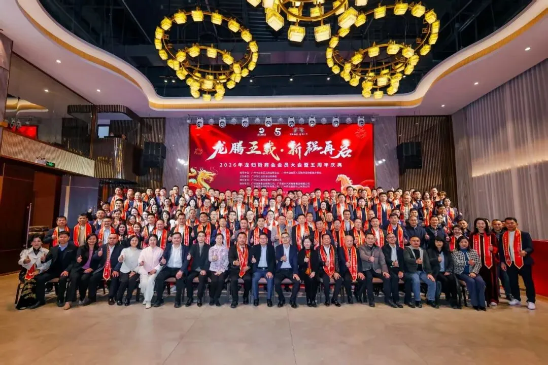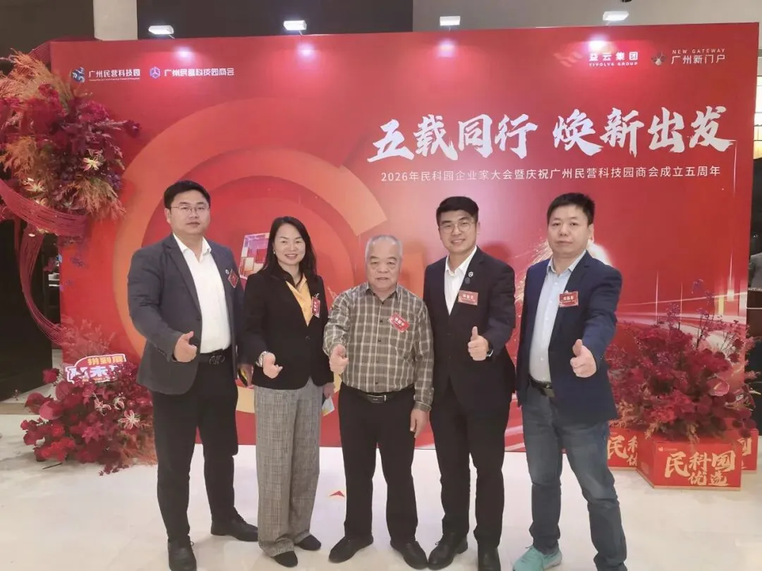 龙归街商会党支部书记徐国平,率会员单位领跑新材料何总、纳金云科技园曾总、聚鑫银企刘总一行,应邀出席2026年民科园企业家大会暨庆祝广州民营科技园商会成立五周年庆典。活动现场气氛隆重热烈,各方嘉宾齐聚一堂,共同回顾商会五载发展历程,展望未来蓝图。此次与会,体现了龙归街商会对兄弟商会工作的支持,促进了彼此间的友好情谊与联动,进一步强化区域商会协同发展,凝聚高质量发展合力。
