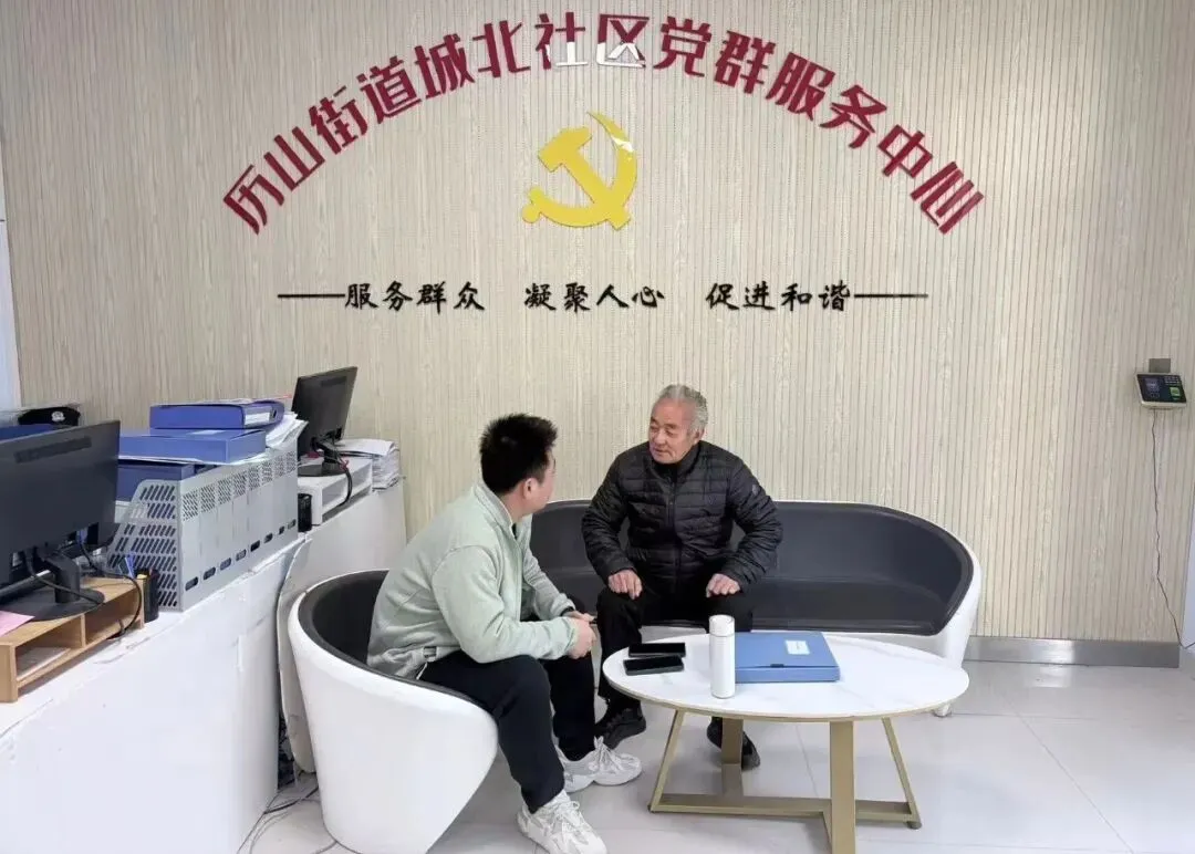 历山街道物业办主任邢叶森与城北社区党总支书记高代亮到执法局物业科对接翡翠山居停车秩序专项整治行动相关工作。