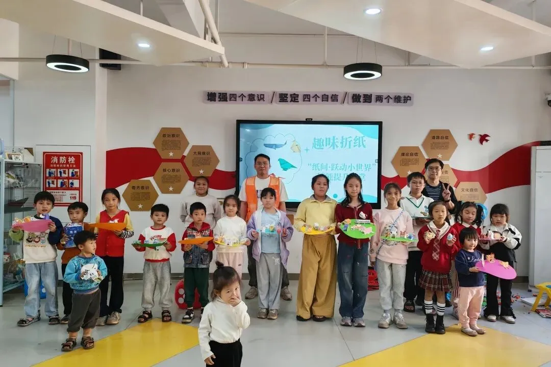 本次活动以“趣味互动+创意折纸”为核心,精心设置了趣味零食小游戏、折纸教学、自由创作、作品展示分享及全体合影五大环节,环环相扣、趣味十足,让每一位参与的小朋友都能沉浸式感受快乐,收获成长