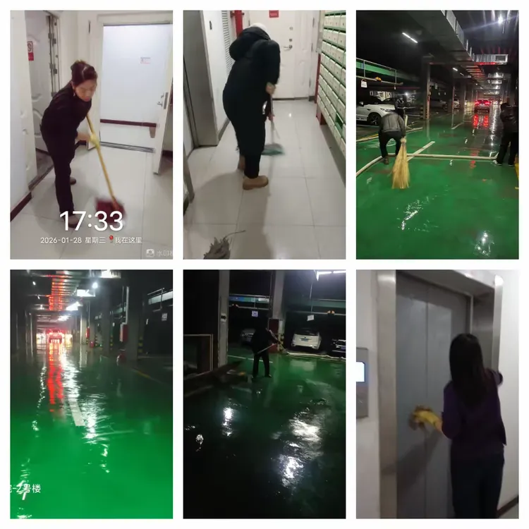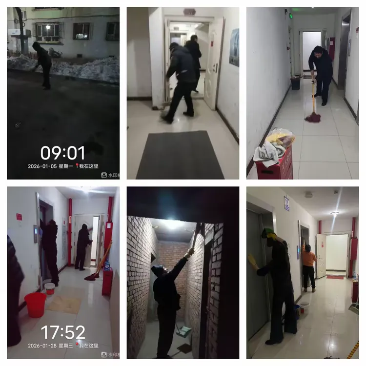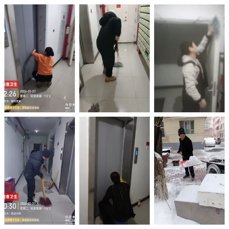 保洁人员起早贪黑、默默无闻的挥动着扫把、拖布,留下了辛勤的汗水,楼宇间、小区都能看到他们忙碌的身影,清理小区垃圾,不畏寒冷、不怕劳累,只为给您通畅洁净的居住环境。