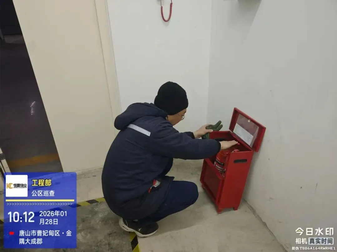 本月对消防栓 、灭火器,保证处于完好状态;对配电室、监控室、机房、档案室、库房等重点部位按规定配备相应种类的灭火器材巡查1次;