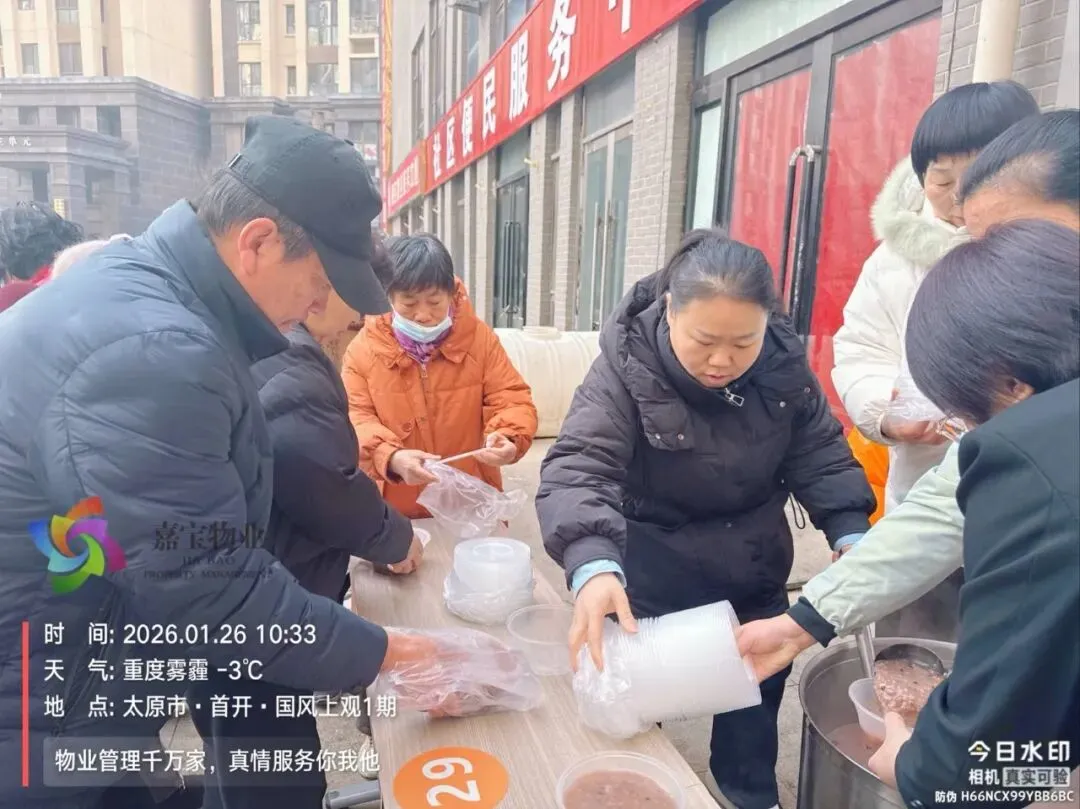 腊月的风,吹来了年的脚步,年味渐浓,带着新年的祈盼,值此腊八来临之际,嘉宝物业精心准备了腊八粥,以朴实的心意、贴心的服务,为业主们送上冬日里的专属温暖与节日祝福,愿这碗暖粥能为大家的冬日添一份甜,祝各位业主腊八安康,万事‘粥’全!