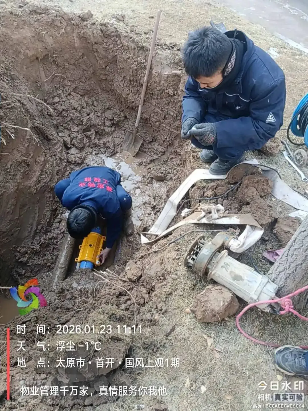 3、5号楼楼1单元自来水主管道漏水维修;