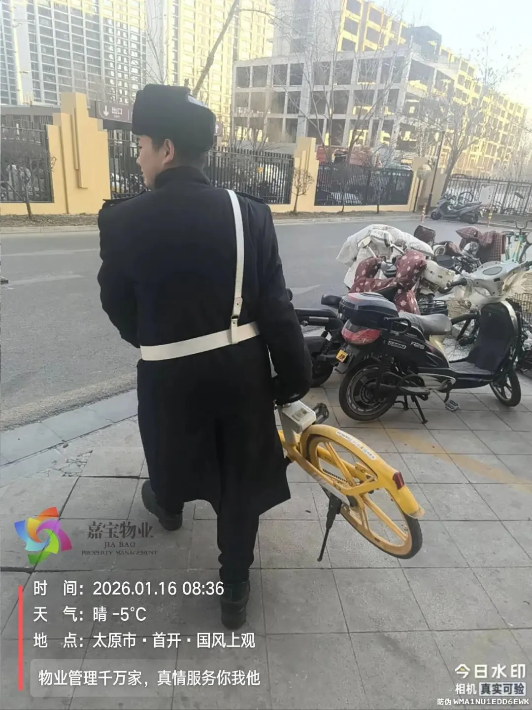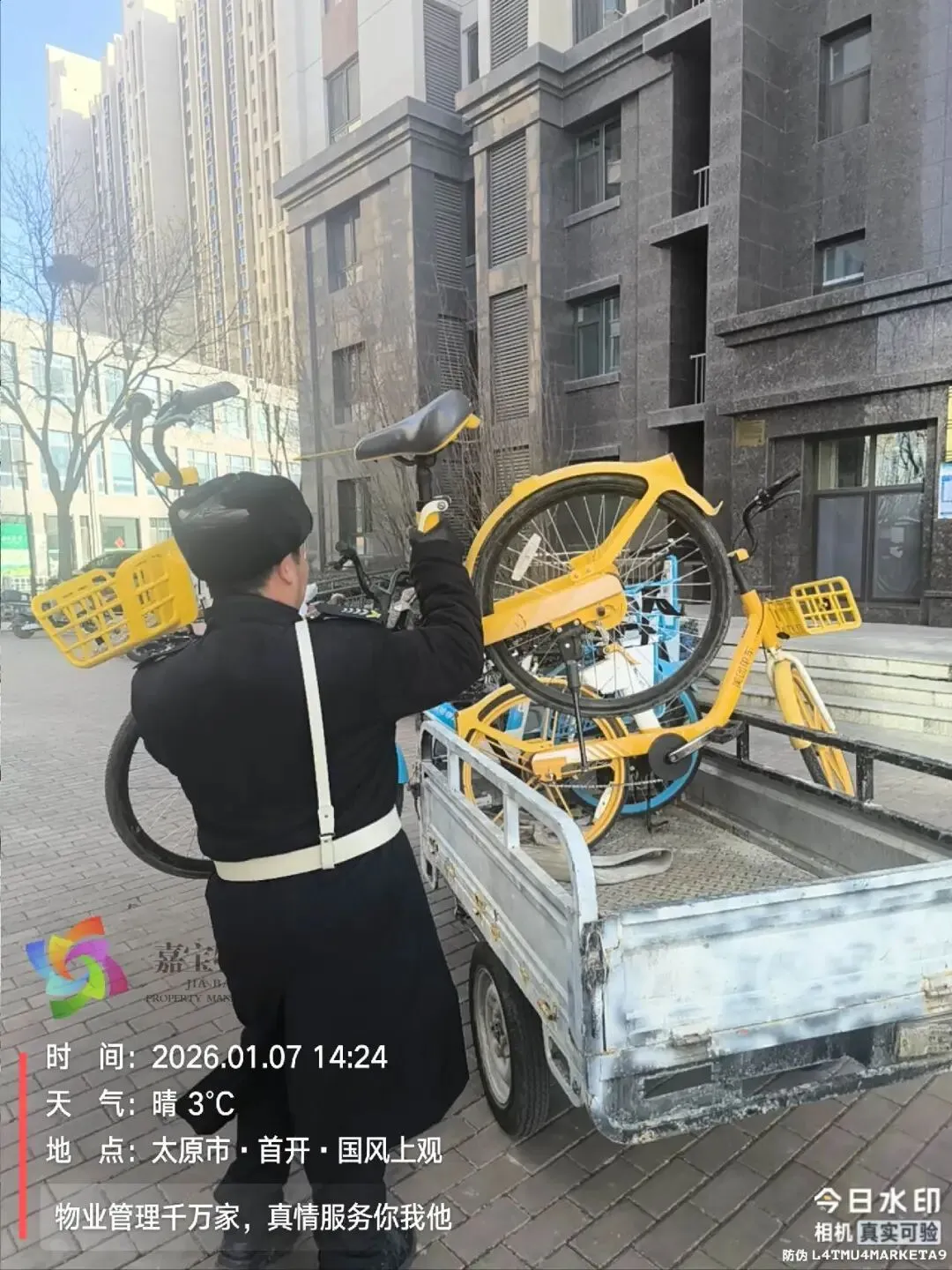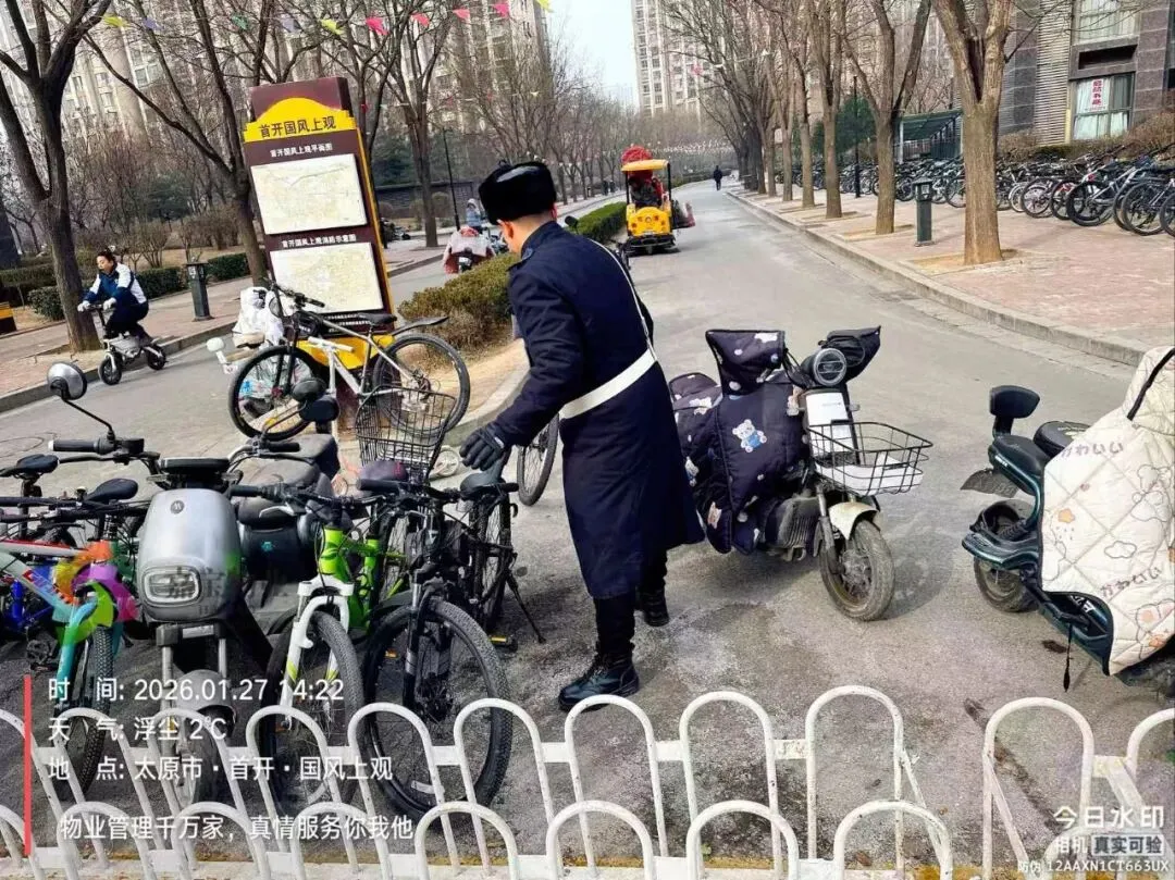 3、规整单元门口电瓶车、自行车、清理共享单车;