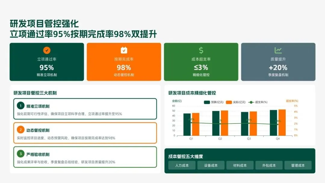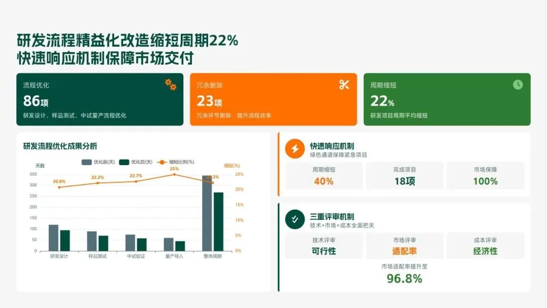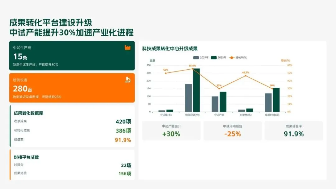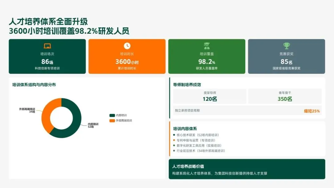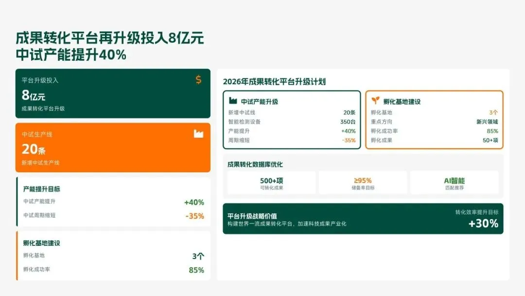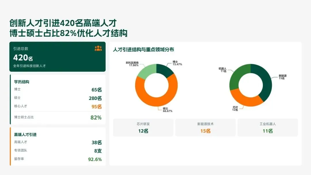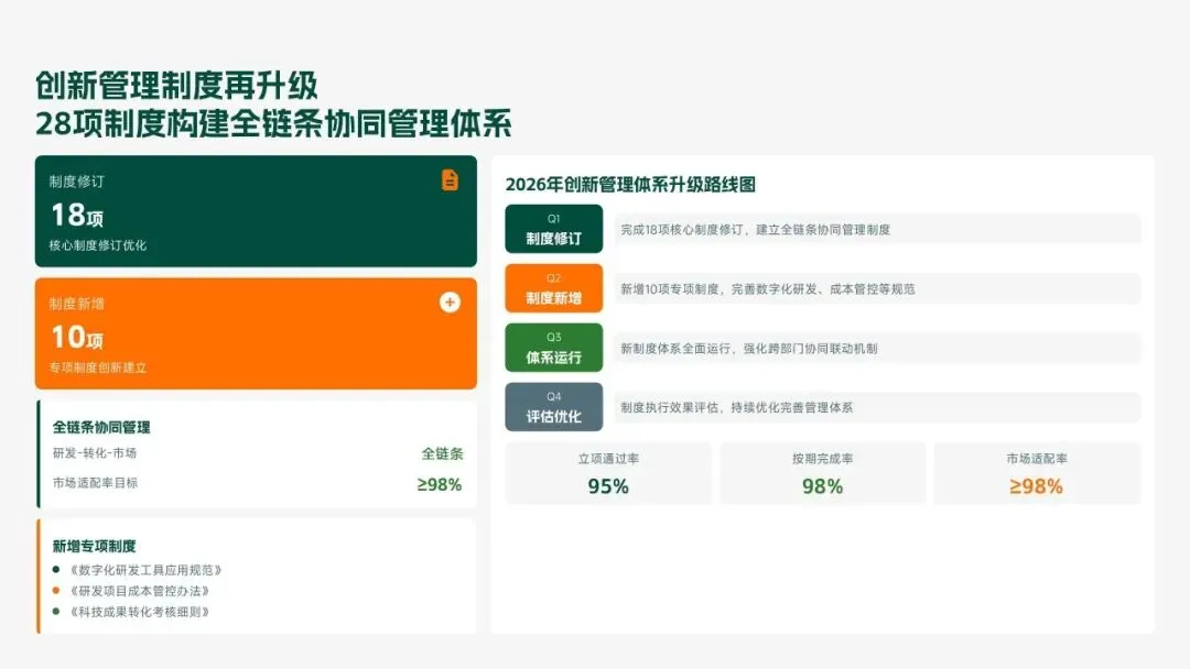 格力电器2025年科技创新管理部紧紧围绕集团“核心技术自主可控、创新体系协同高效、成果转化提质增效”核心科技战略,统筹推进核心技术研发、创新体系优化、科技成果转化、产学研协同创新、创新人才培育五大核心工作,全年科技研发投入达186亿元,占营收比重8.2%(同比提升1.3个百分点);累计突破核心技术瓶颈42项,其中全球领先技术8项;新增专利授权1286项(发明专利652项),专利保有量达9860项;科技成果转化产值达528亿元,转化效率同比提升28.5%;成功牵头或参与制定国家/行业标准15项,顺利通过国家级企业技术中心复核,为集团全品类产品迭代升级、市场竞争力提升筑牢了坚实的科技支撑。现将全年工作情况总结如下,并对2026年工作作出全面规划。