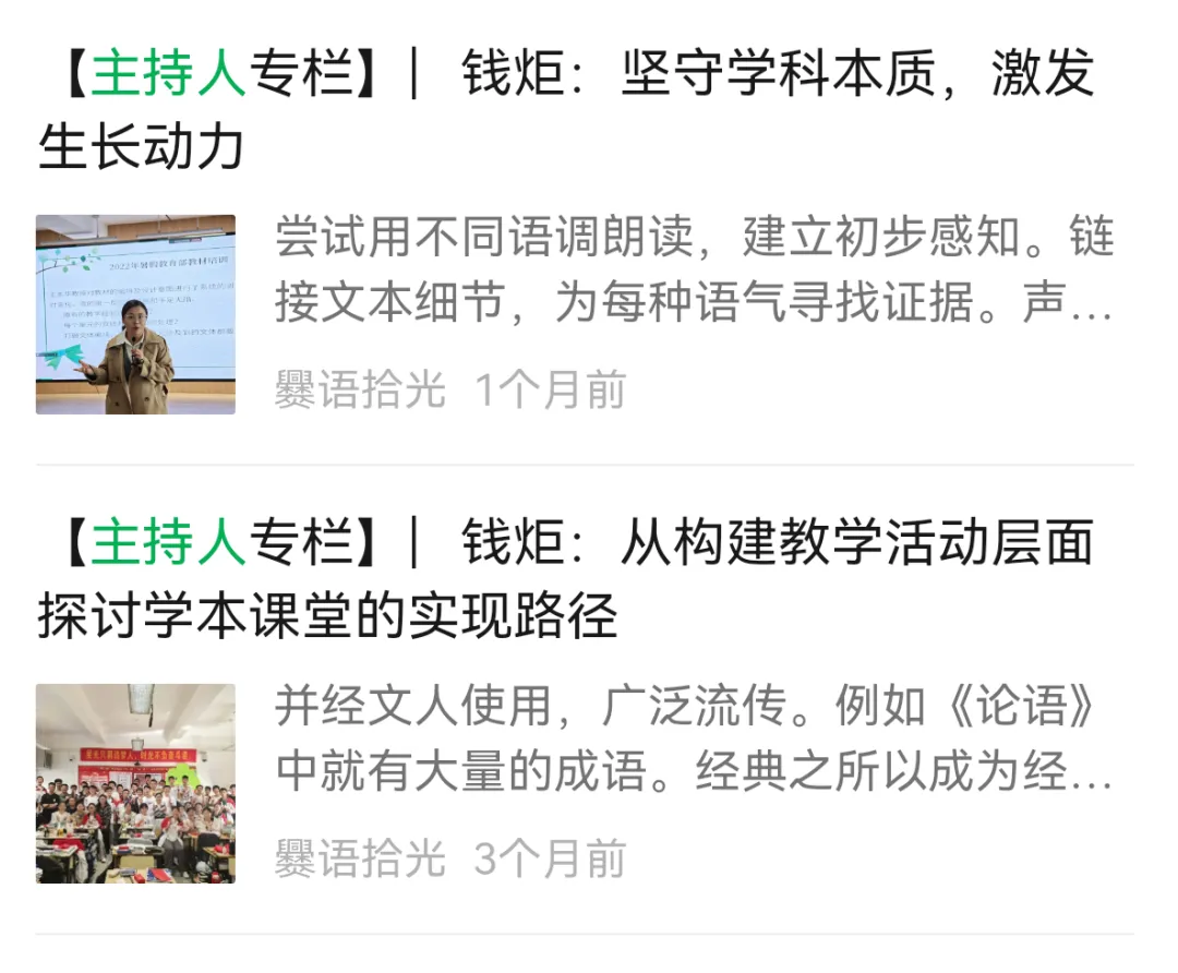(3)教学案例精品化:如“懿晖”团队韦堂芸的《悬念教学法在语文课堂中的创新与实践》;“鹿鸣麒麟”团队关于《红楼梦》小人物研究的系列文章,提供了具体可仿的操作策略与新颖独到的文本解读视角。