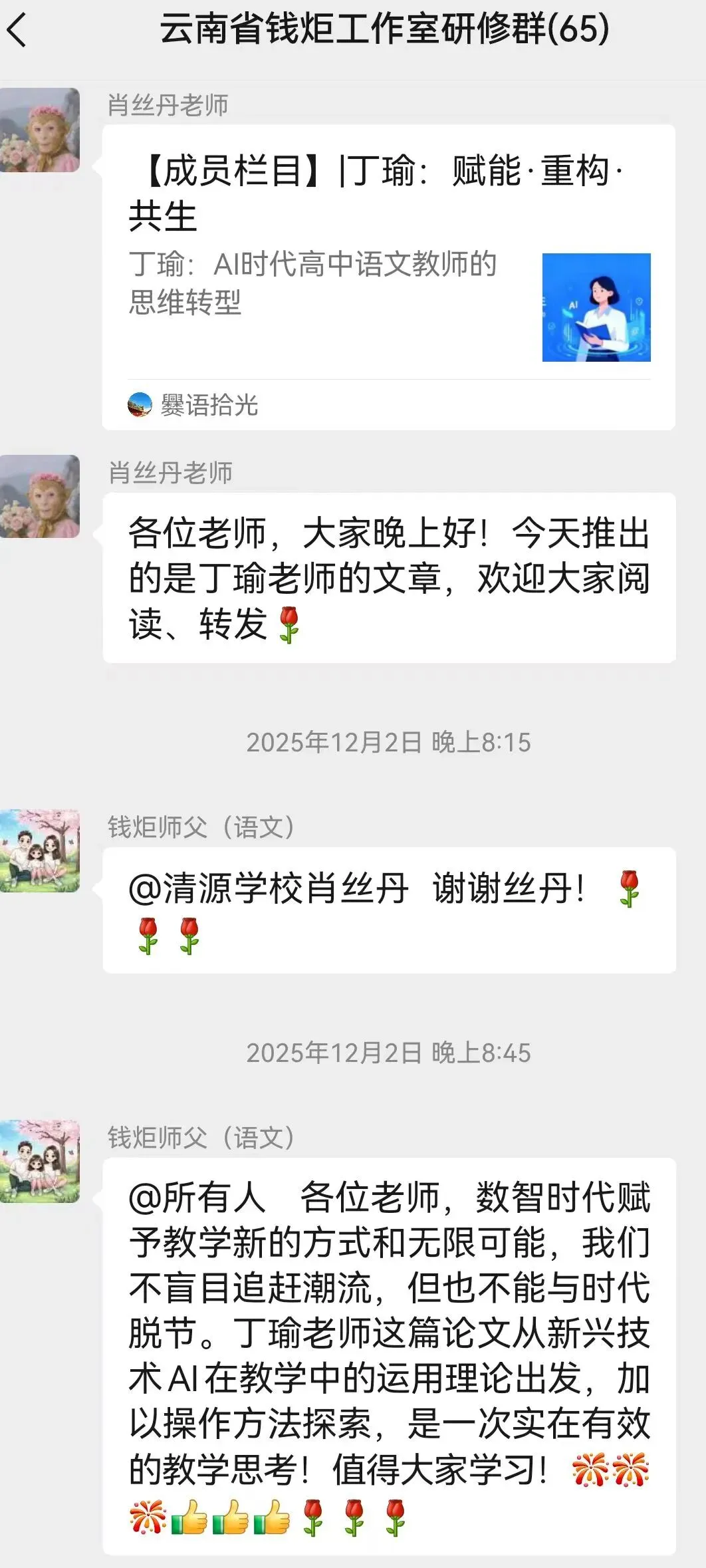 4.一线教师文本分析组(玉溪“楚溪”团队、曲靖一中“学语之思”团队):李阳、代利梅等老师从教学一线出发,撰写《从2025高考真题反推阅读教学》等深度分析文章,提炼命题趋势并反哺教学。